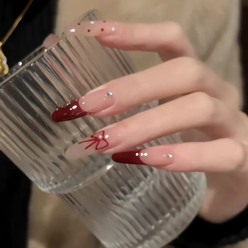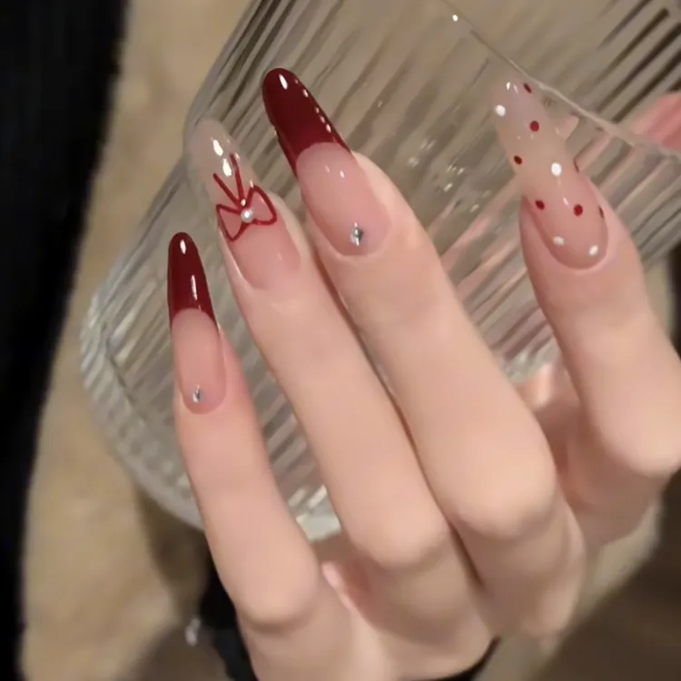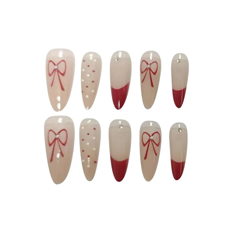 MAXFINE Красный French Polka Dot Bowknot False Nail Длинный Ледяная прозрачность Jump Цвет 30MM 10 шт
