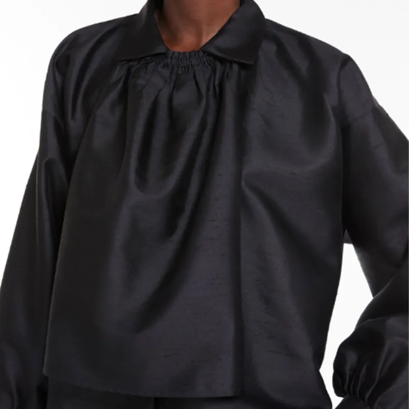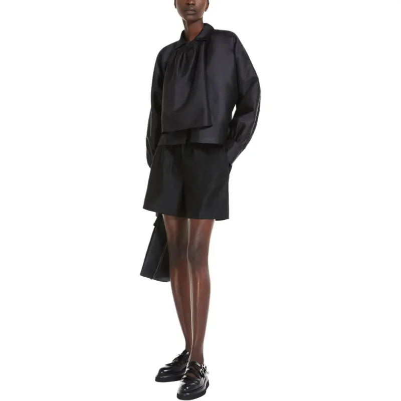 MaxMara Callas Collection Шantung Шелк And Хлопок Рубашка Женская Черная