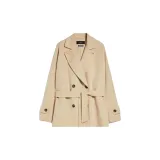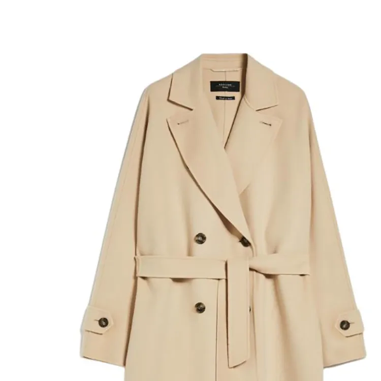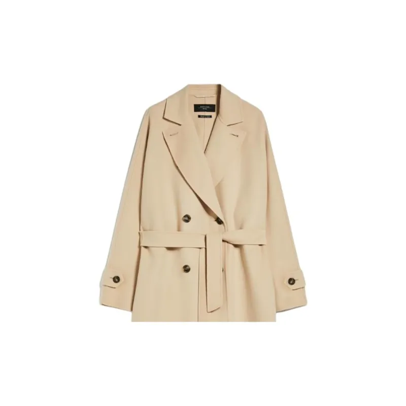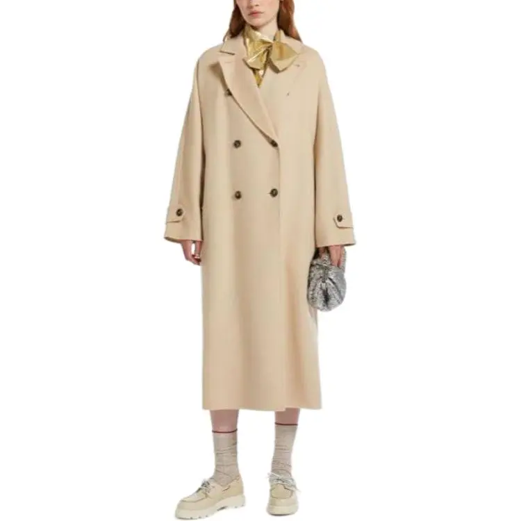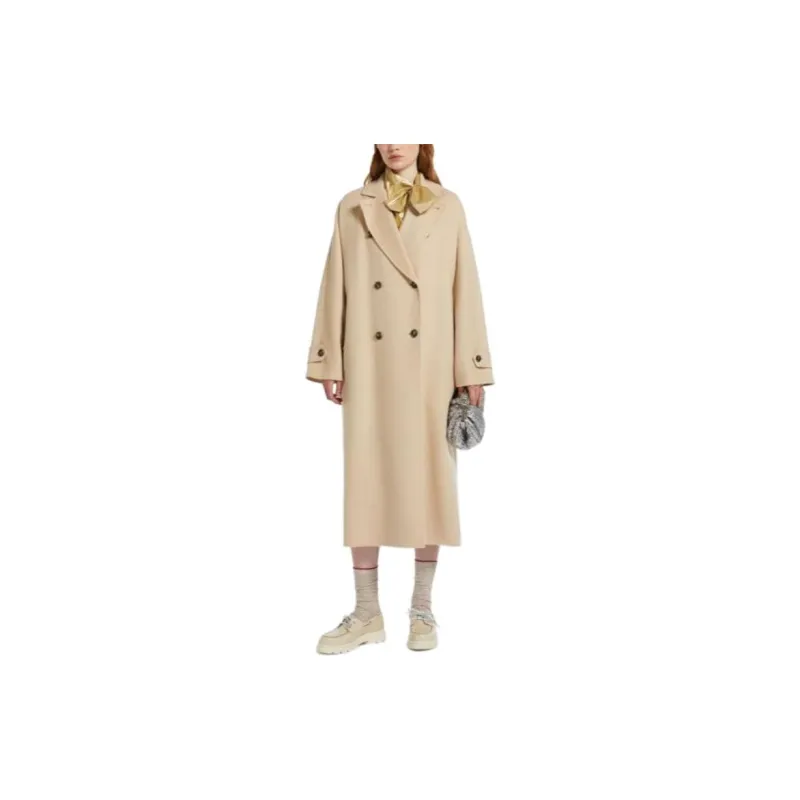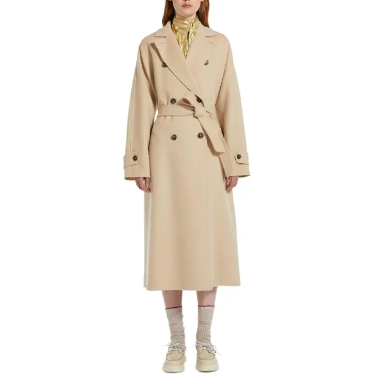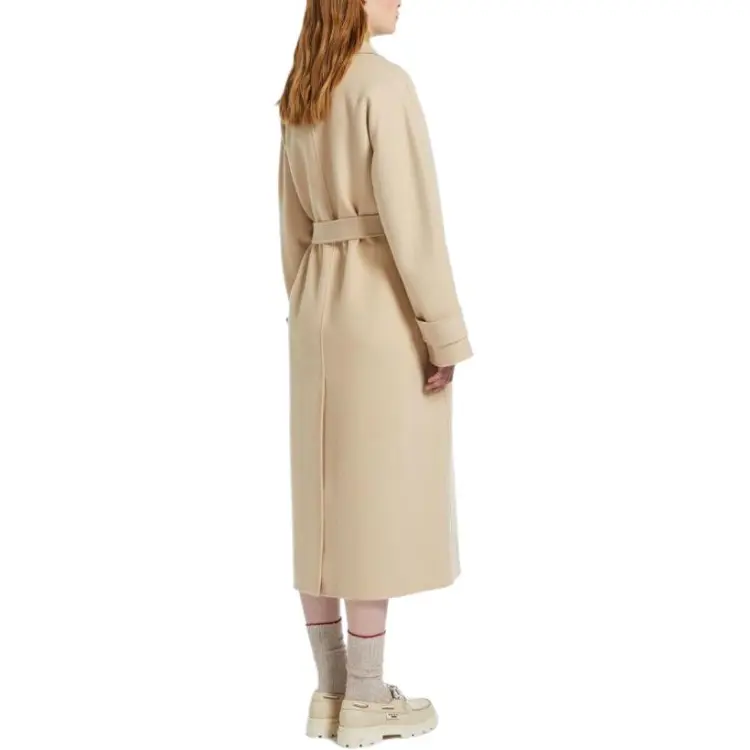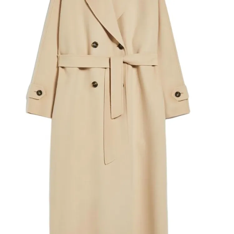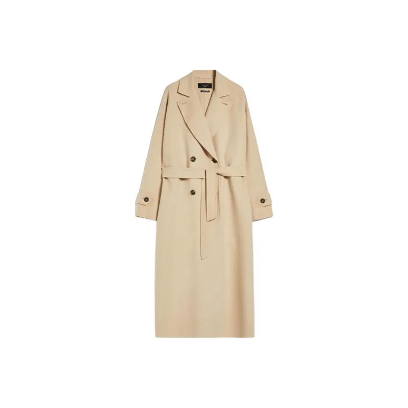 MaxMara Длинный тренчкот из шерсти и технологичной ткани женский песочного цвета