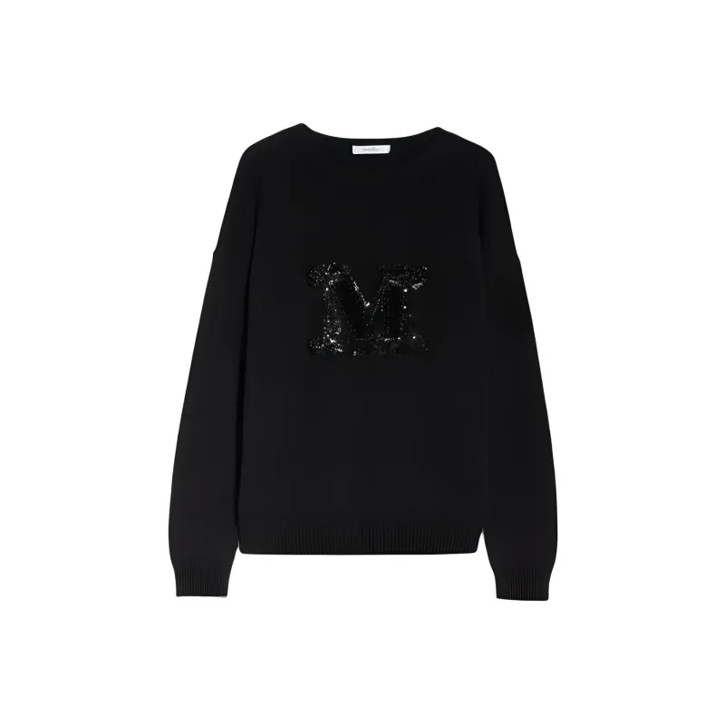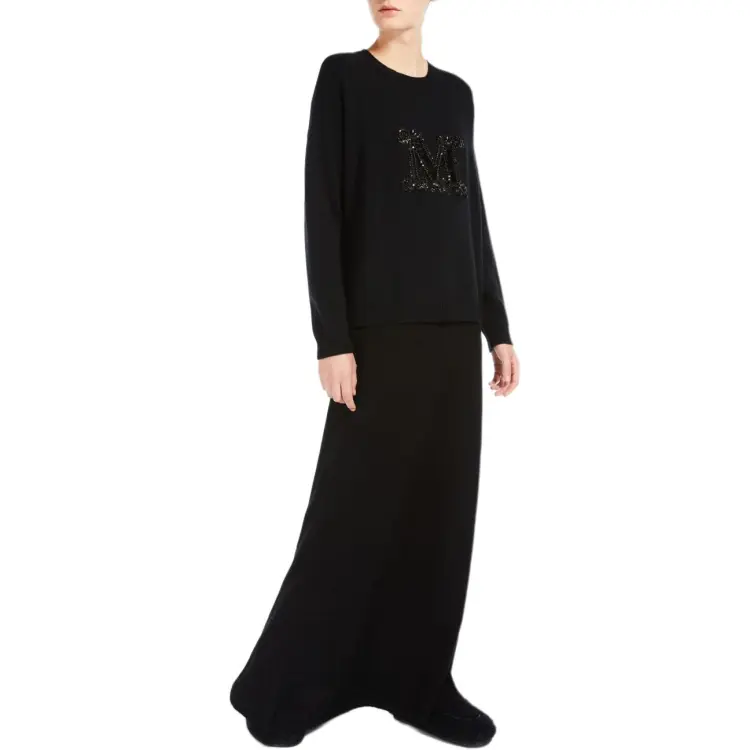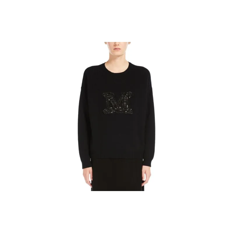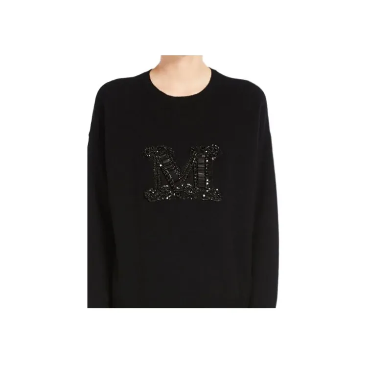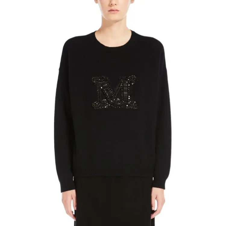 MaxMara Palato Коллекция JEWEL Вышитый Кашемир Jumper Трикотаж Женский Черный