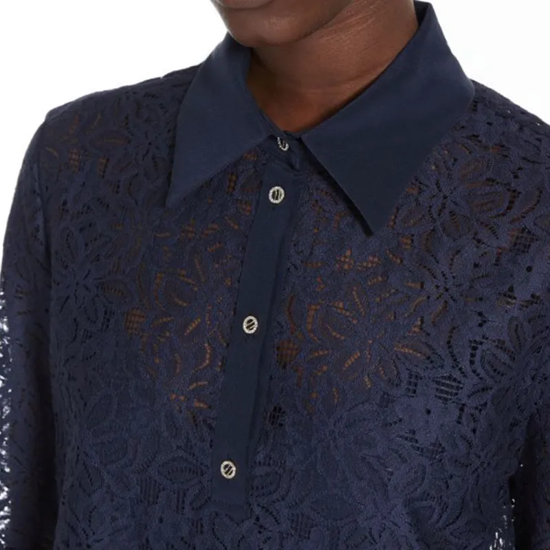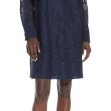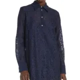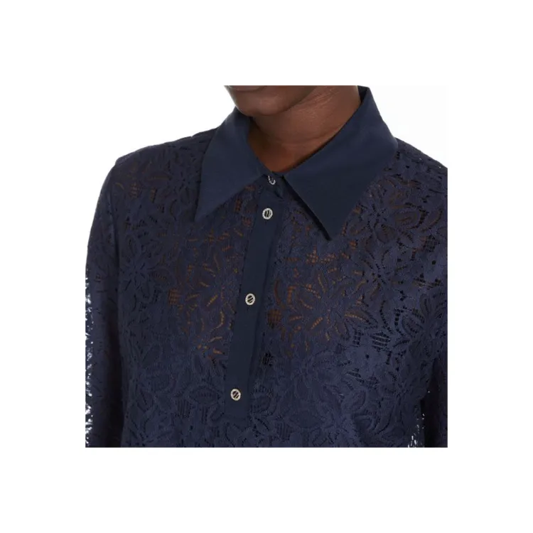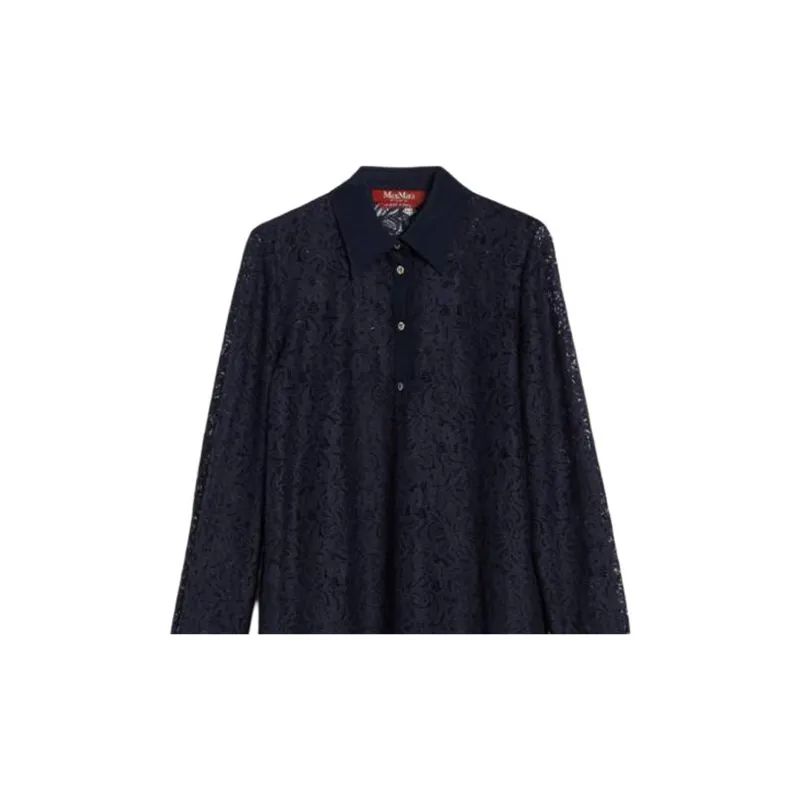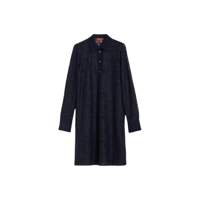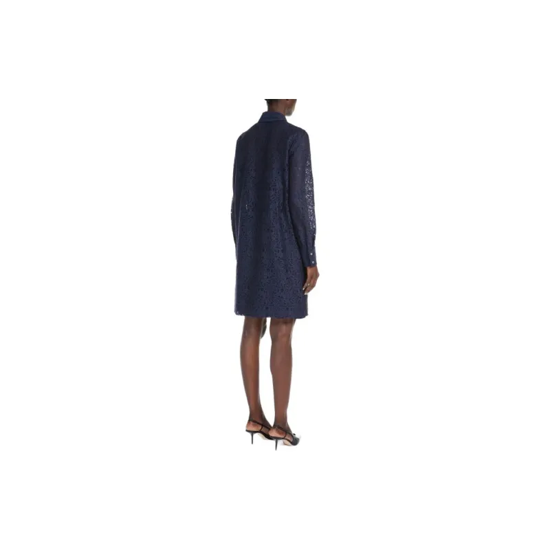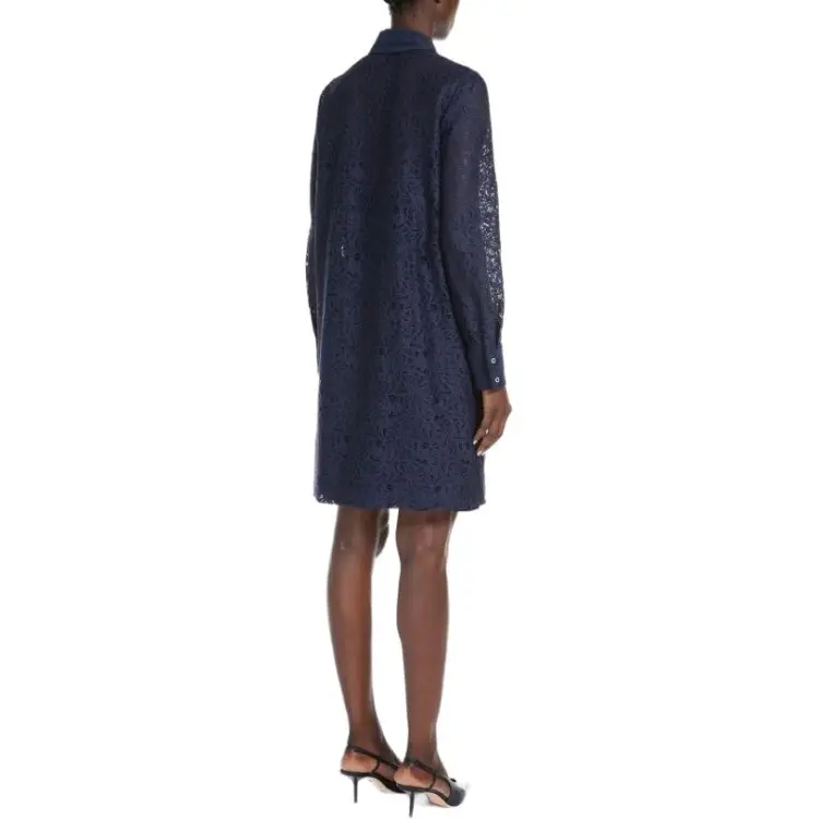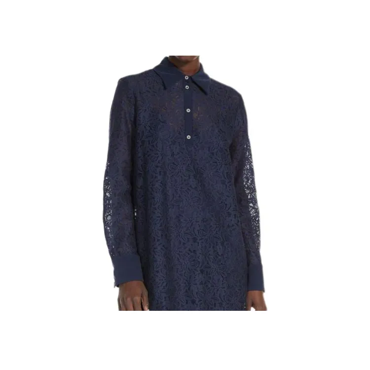 MaxMara Studio Adamo Коллекция Цветочный Кружево Платье Длинное с Длинными Рукавами Женское Морской Синий