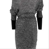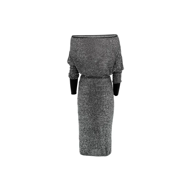 MaxMara Studio Длинное платье с длинными рукавами женское черное
