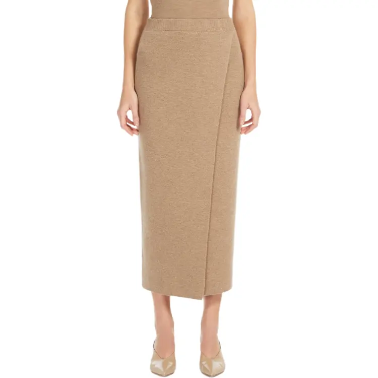 MaxMara Umbria Коллекция Straight Шерсть And Кашемир Юбка Повседневный Длинный Юбка Женские Hazelnut Коричневый