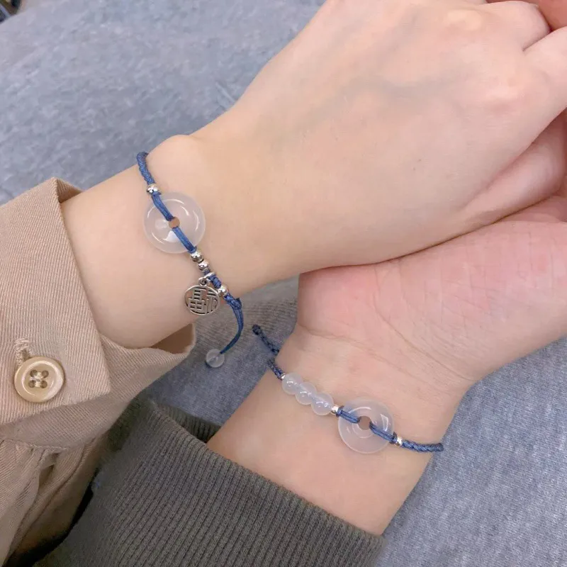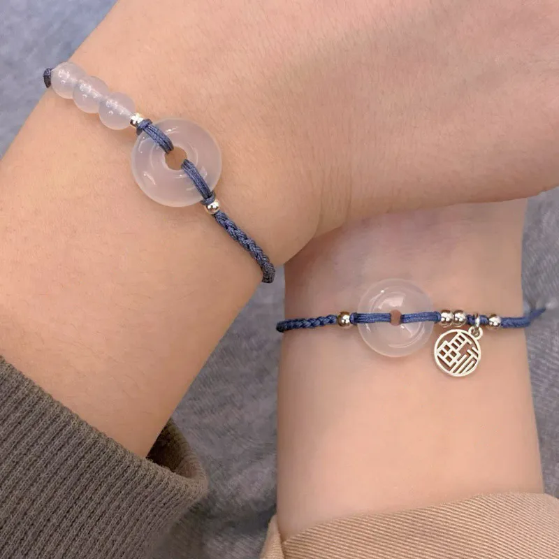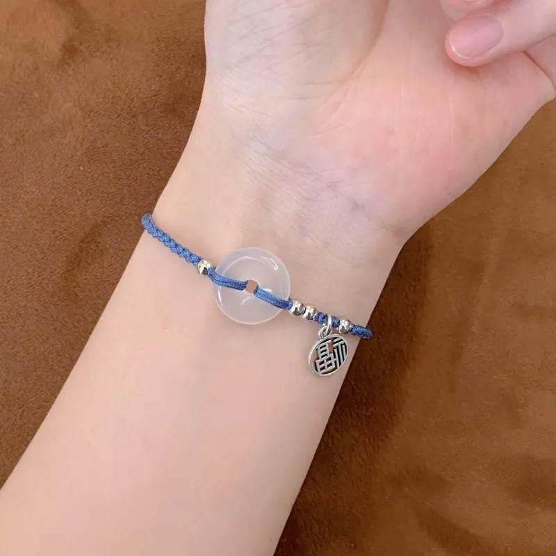 Стиль:Подвеска с иероглифом "Fu" Мирная Застежка Браслет-шнурок (Синий)