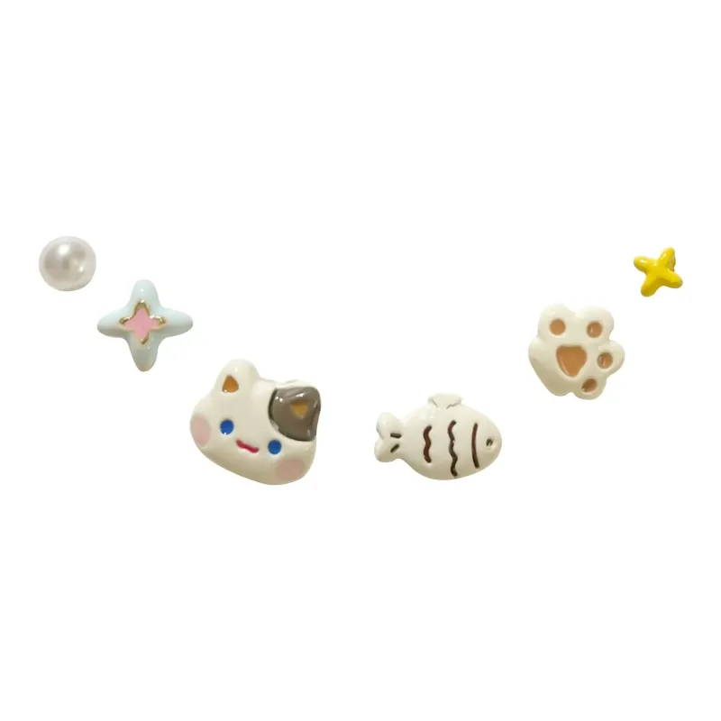 Стиль:Котенок Белый Рыбка Одежда Наборы Серьги-гвоздики