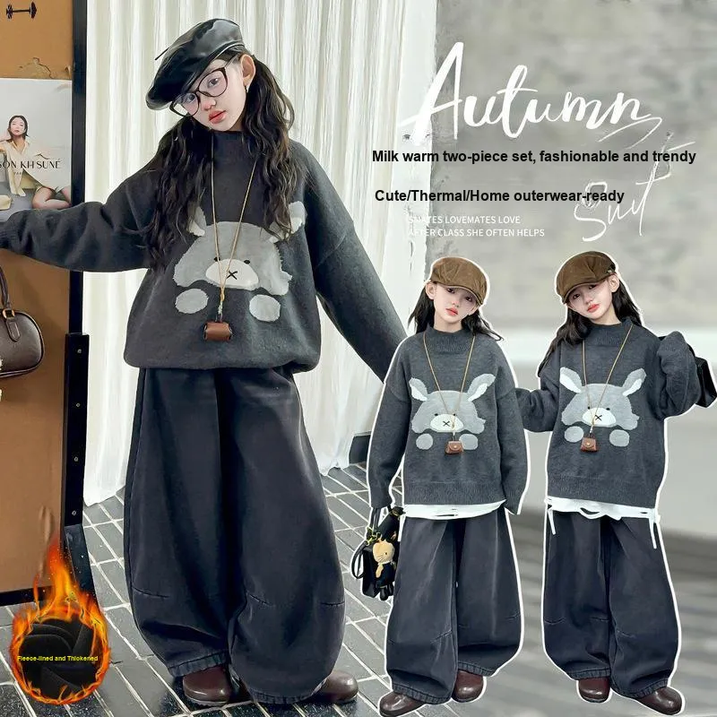 Цвет:Свитер "Кролик" + Флисовая подкладка Dad Брюки