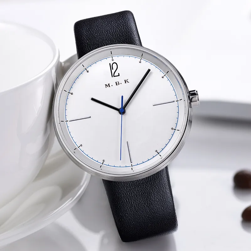 MBK Кварцевый механизм кожаный ремешок унисекс белый циферблат
