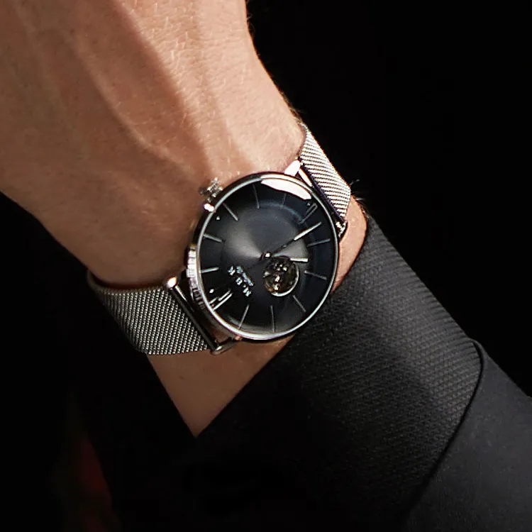 MBK STAR COLLECTION Hollow Series Механические часы с автоматическим механизмом стальной ремешок унисекс черный циферблат