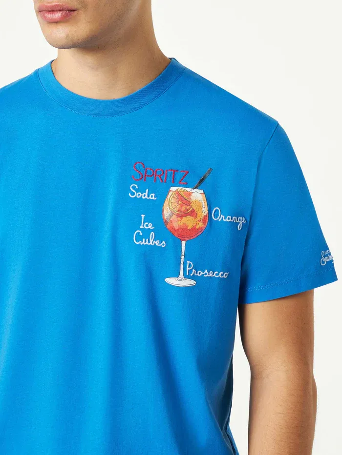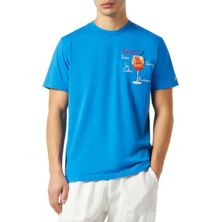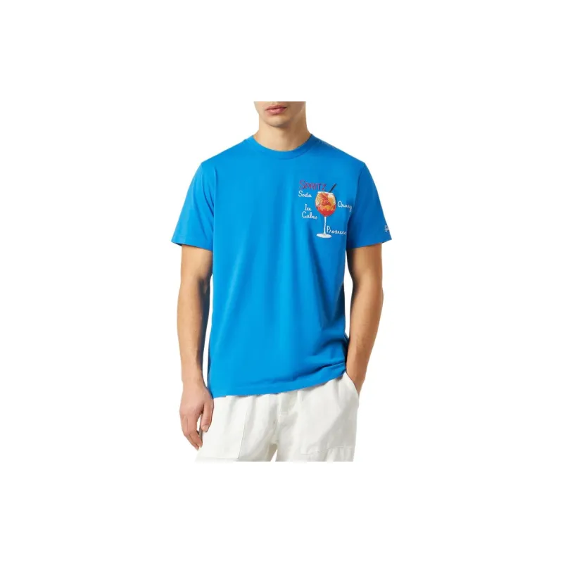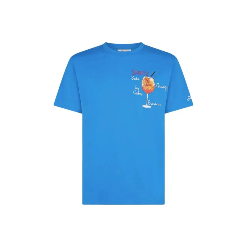 MC2 SAINT BARTHELEMY Хлопковая футболка с принтом Spritz мужская синяя