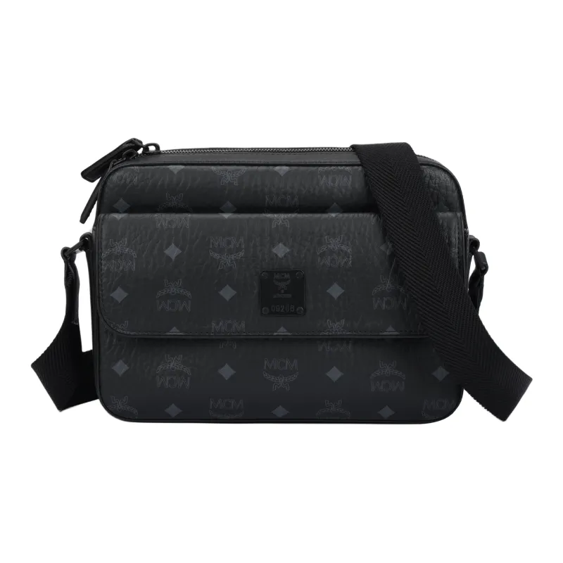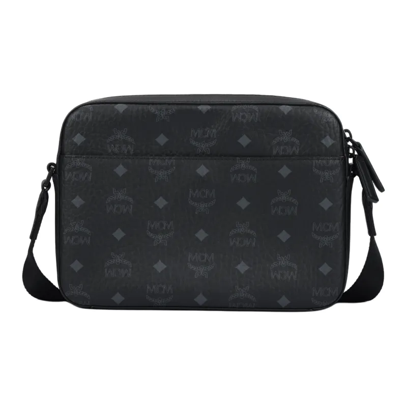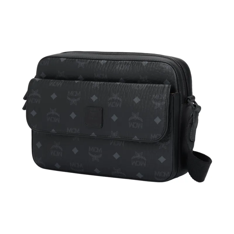 MCM Aren Покрытый холст с кожаными вставками сумка через плечо среднего размера унисекс черный