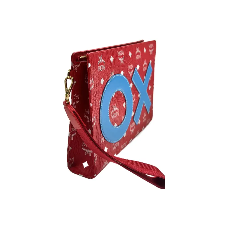 MCM Canvas Leather Bangle Clutch Medium Women's Red