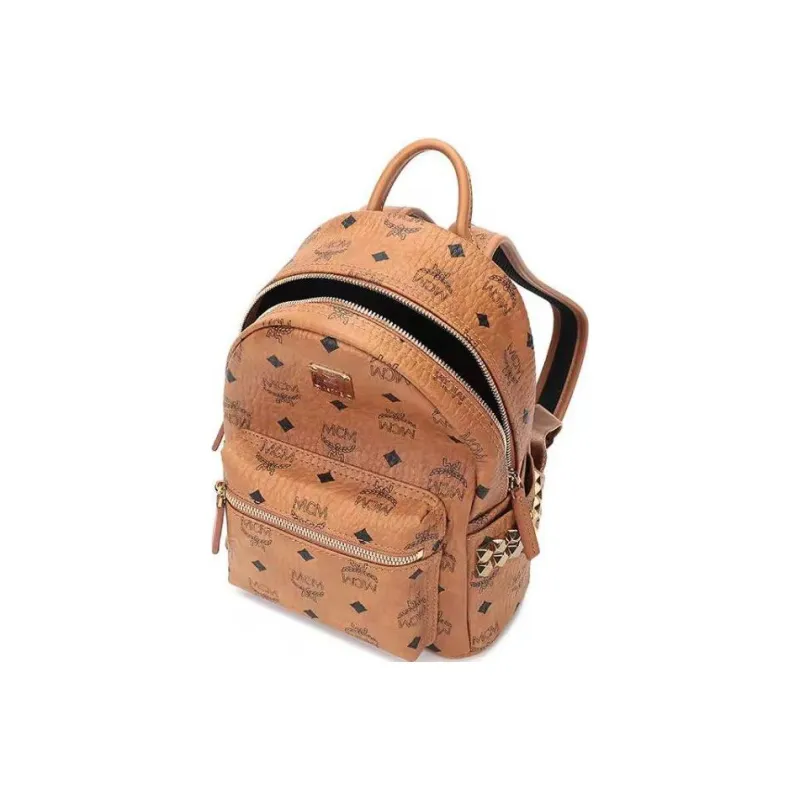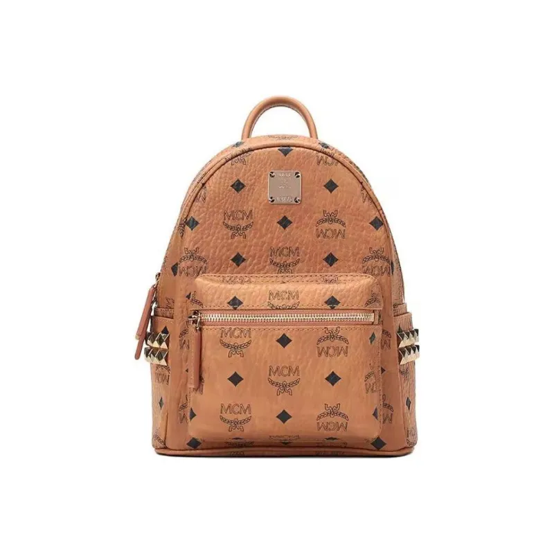 MCM Stark Visetos Покрытый холст Рюкзак Мини Унисекс Коньячный Коричневый