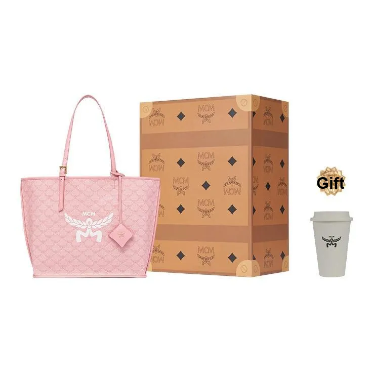 MCM Himmel Lauretos Покрытие Холст Кожа Одно Плечо Сумка Женская Розовая