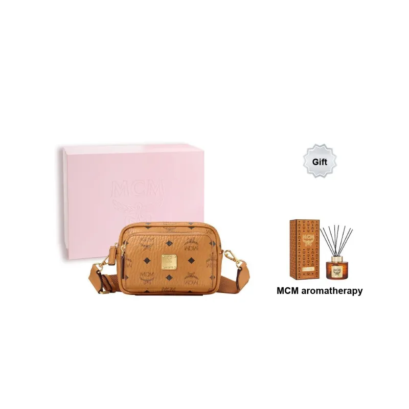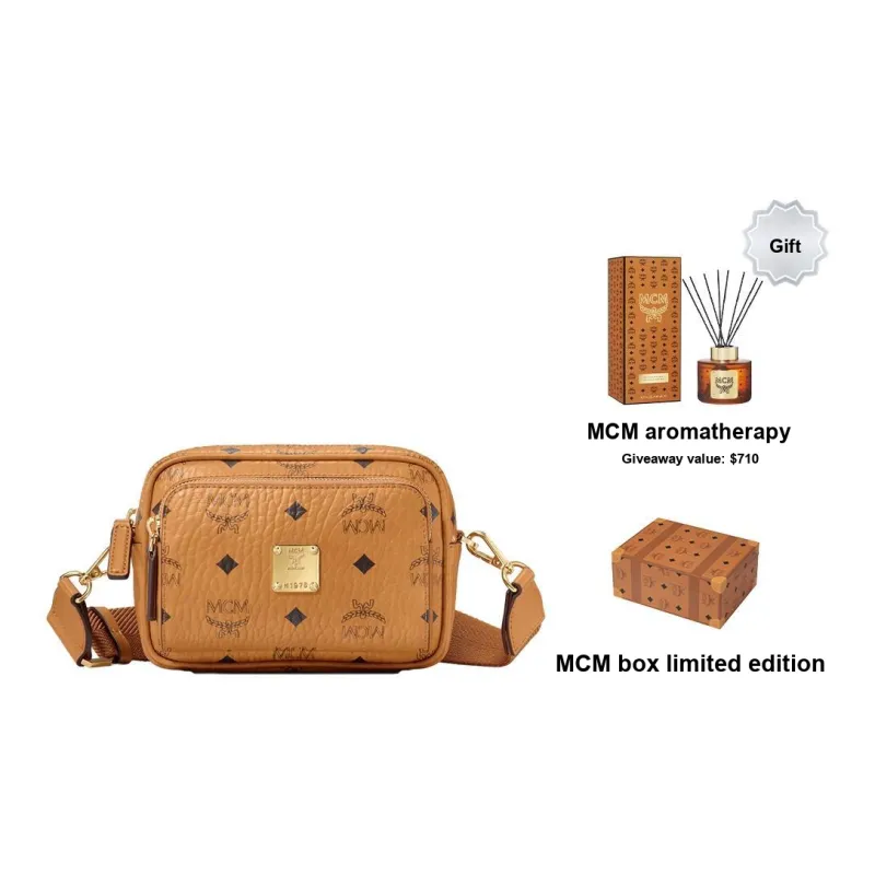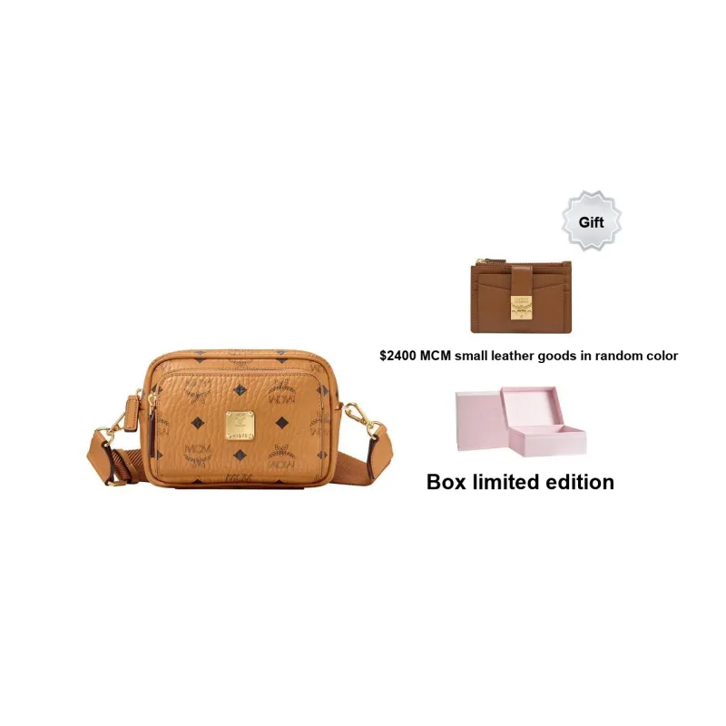 MCM Aren Покрытый холст Сумка через плечо Экстра мини Унисекс Коньячный коричневый