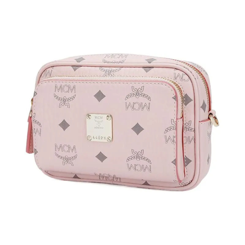 MCM Klassik Visetos Кожа Camera Сумка Сумка через плечо Сумка на плечо Экстра мини Женская Нежно-розовая