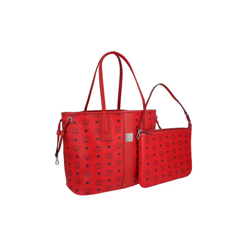 MCM Liz Visetos Кожа Комбинированная Сумка Тоут Сумка Сумка для покупок Сумка Сумка через плечо Средняя Женская Красная