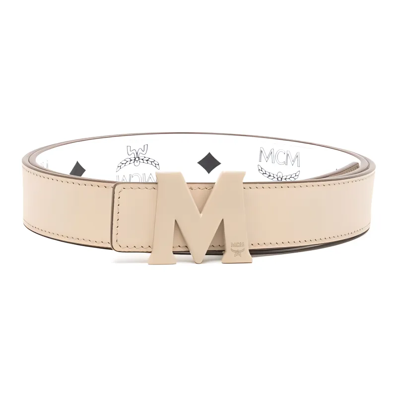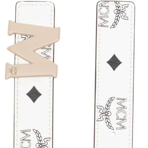 MCM Logo Print Smooth Clasp Leather Belts Unisex White Width 3cm MCM Logo Print Плавная застежка Кожаные ремни Унисекс Белый Ширина 3 см