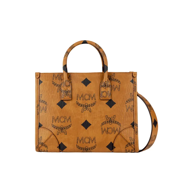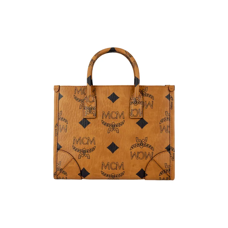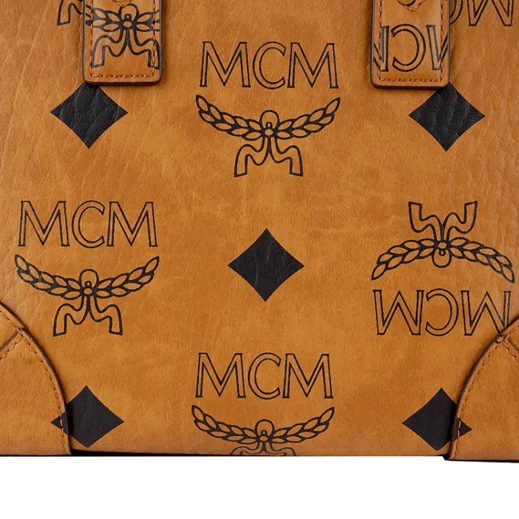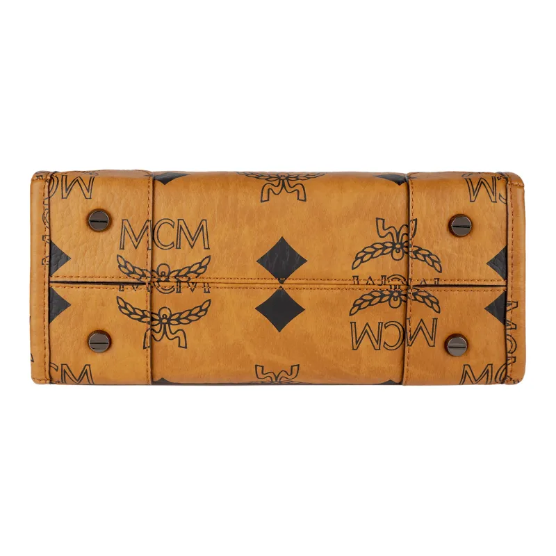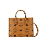 MCM München Visetos Покрытый холст с кожей наппа Тоут Сумка Сумка для покупок Ручная сумка Сумка через плечо Маленький Унисекс Коньяк