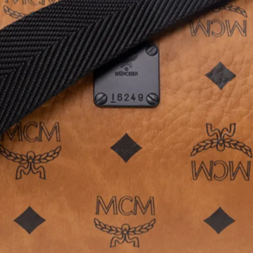 MCM Холст и Кожа Комбинированная Сумка через плечо Сумка для туалетных принадлежностей Сумка для макияжа среднего размера Женская Коричневая