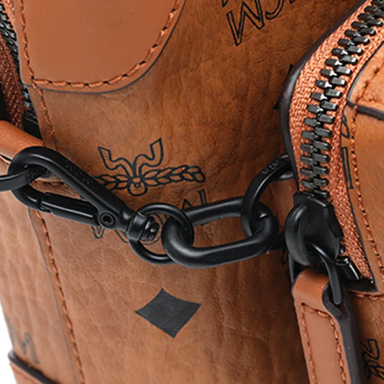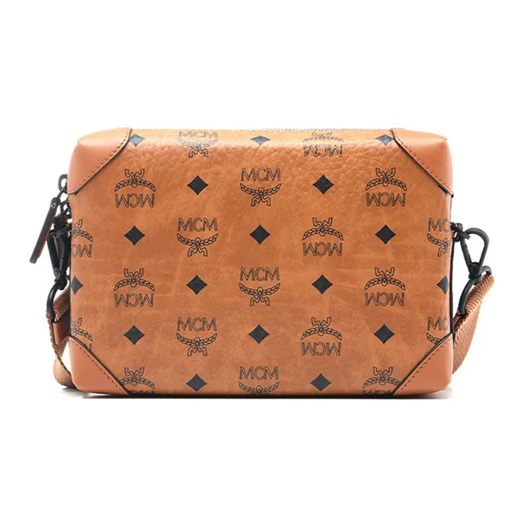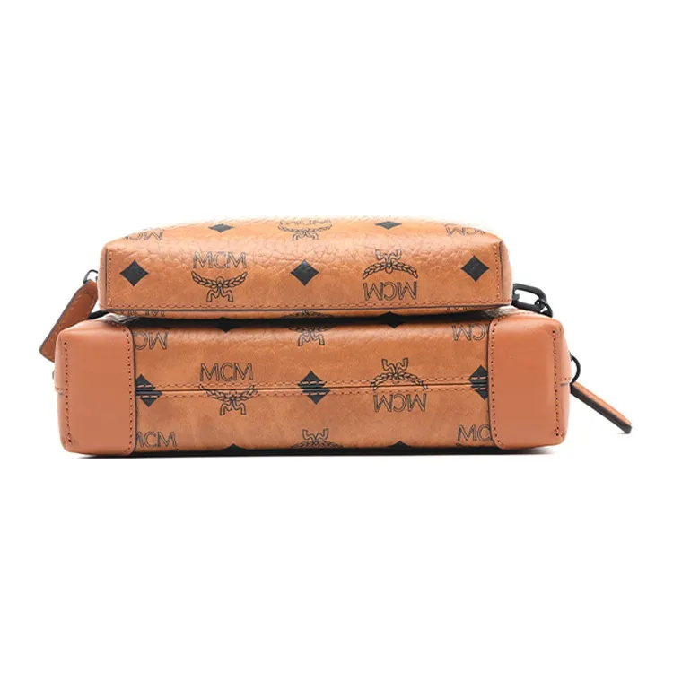 MCM Soft Berlin Visetos Кожаная отделка Сумка через плечо Маленькая Женская Коричневая Коньячная