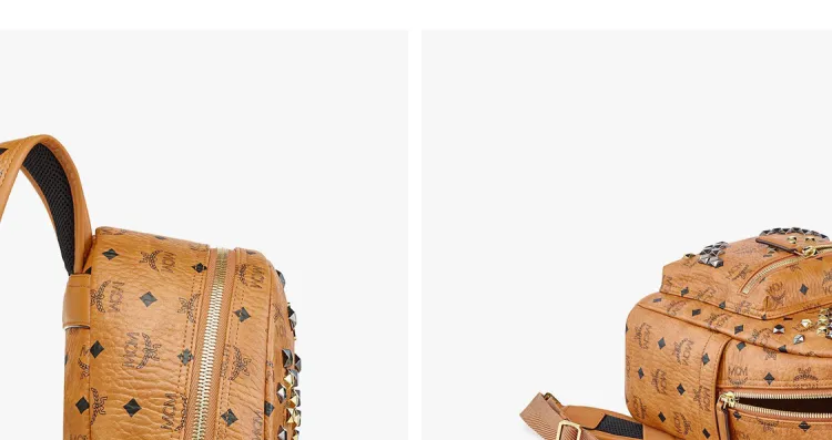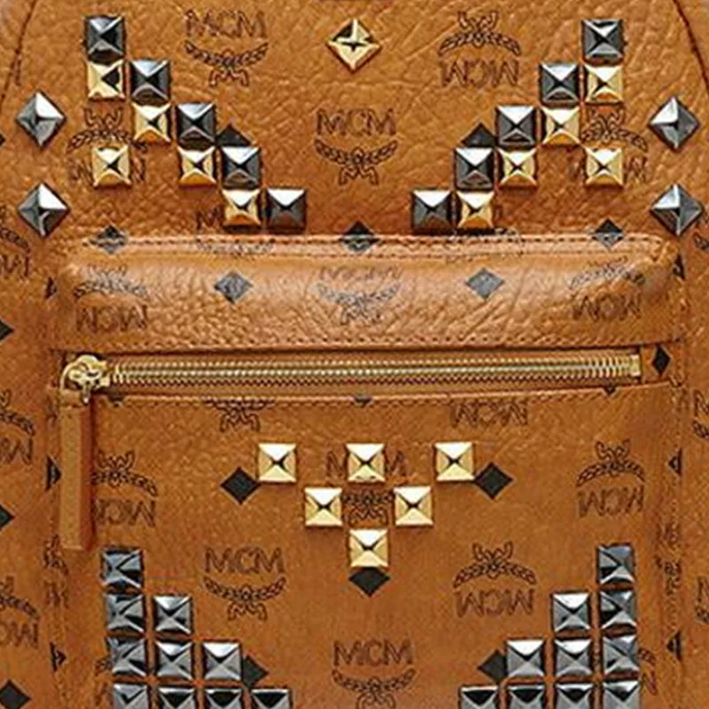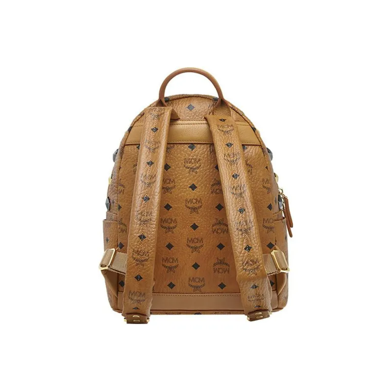 MCM Stark Visetos Покрытый холст Рюкзак Средний Унисекс Коньячный Коричневый
