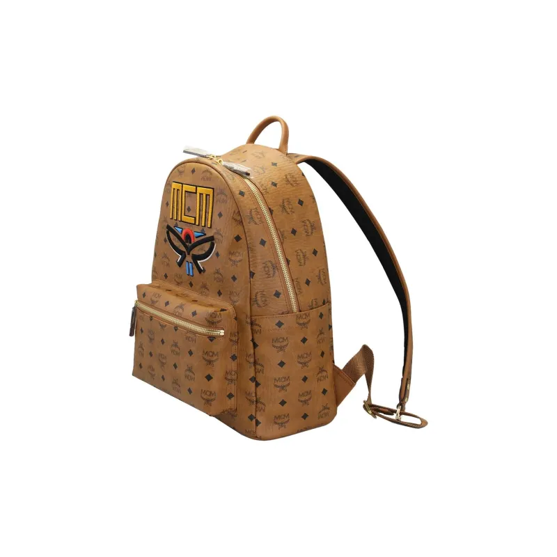 MCM Stark Visetos Покрытый холст Рюкзак Средний Унисекс Коньяк