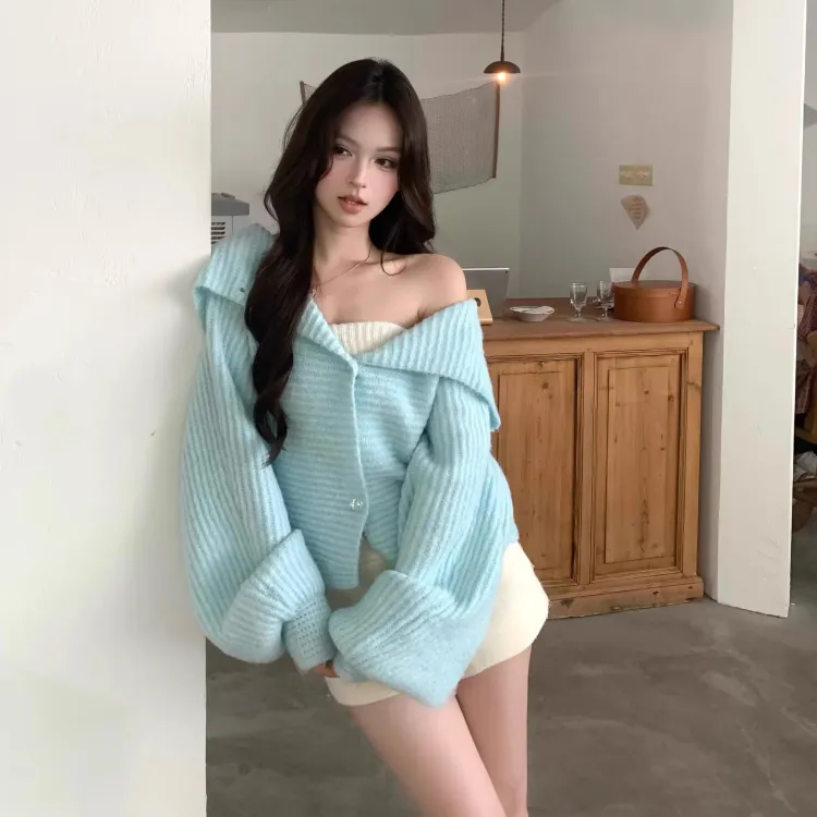 MDEHT Синий Пальто Женские Трикотаж