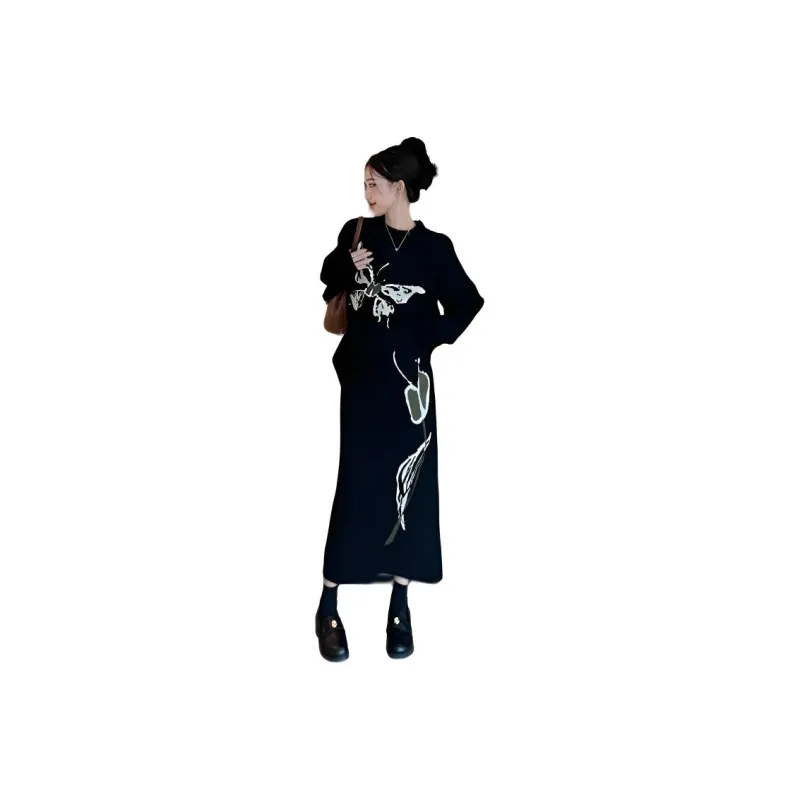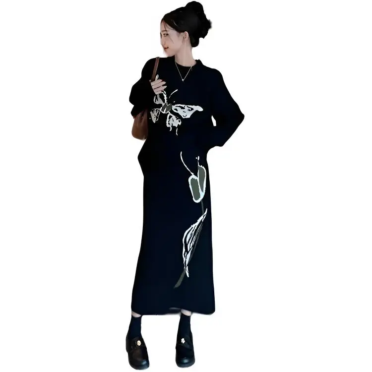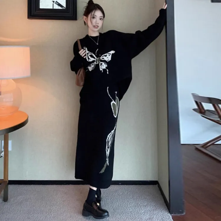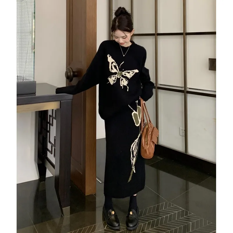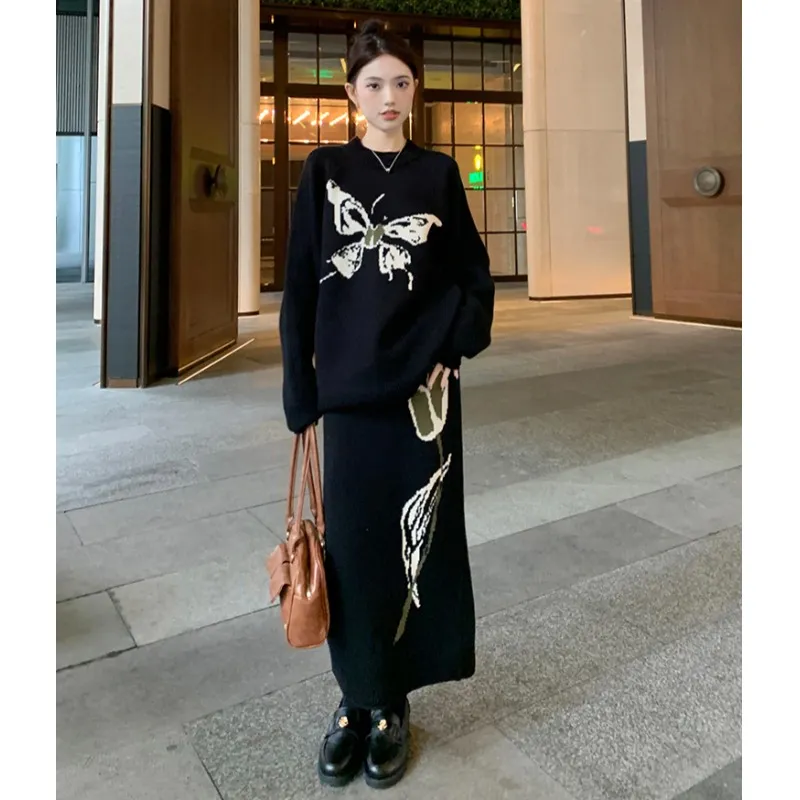 MDEHT Черный Свитер + Черная Юбка Женские Комплекты с Юбкой