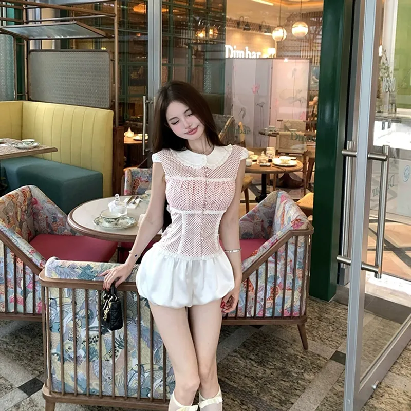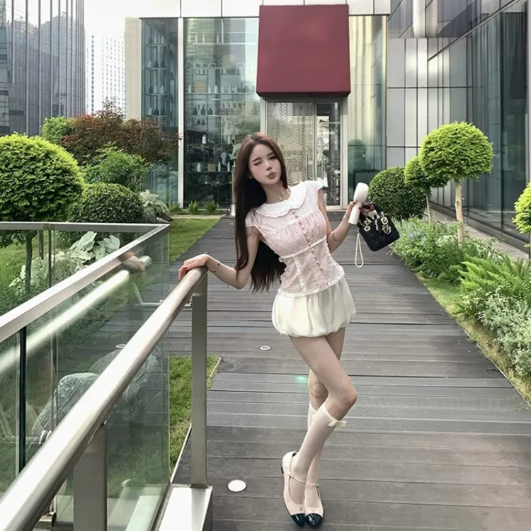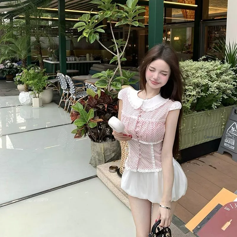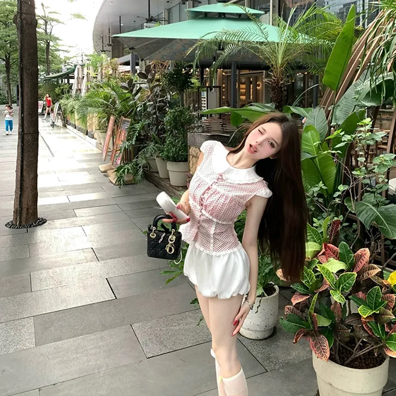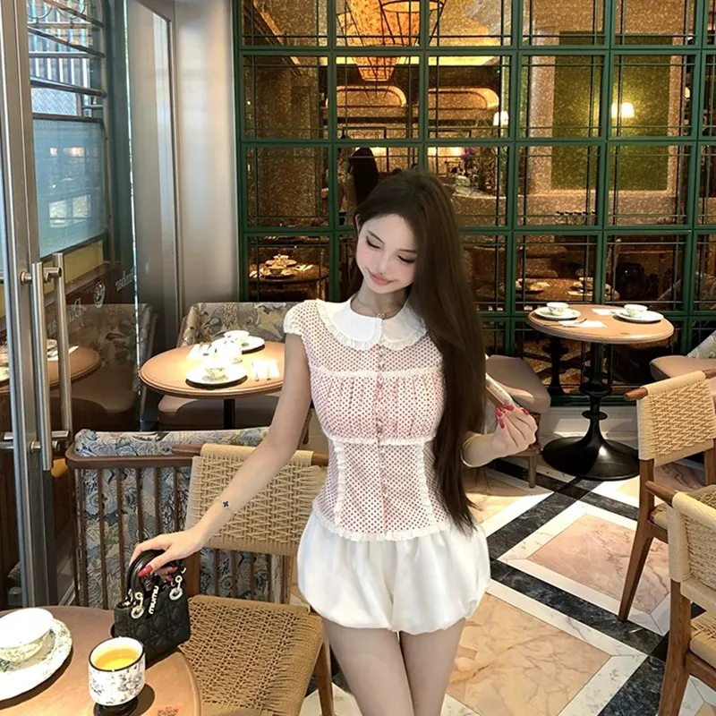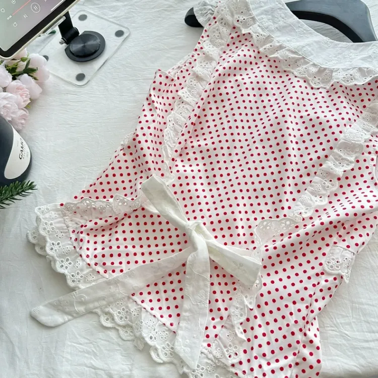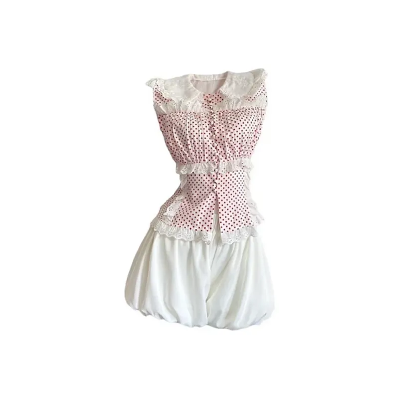 Комплект:Красный топ с точкой + белые штаны, комплект одежды