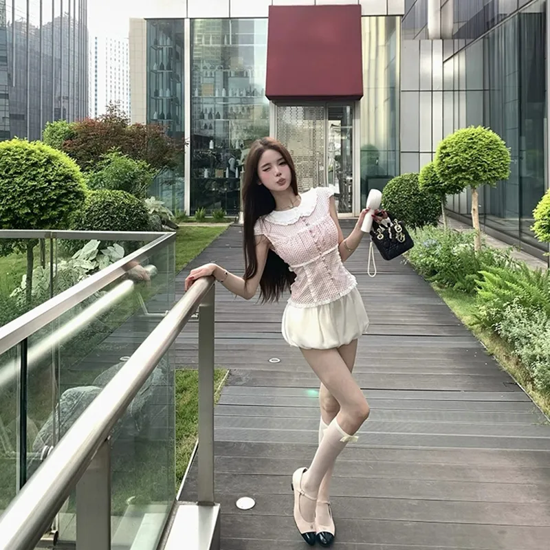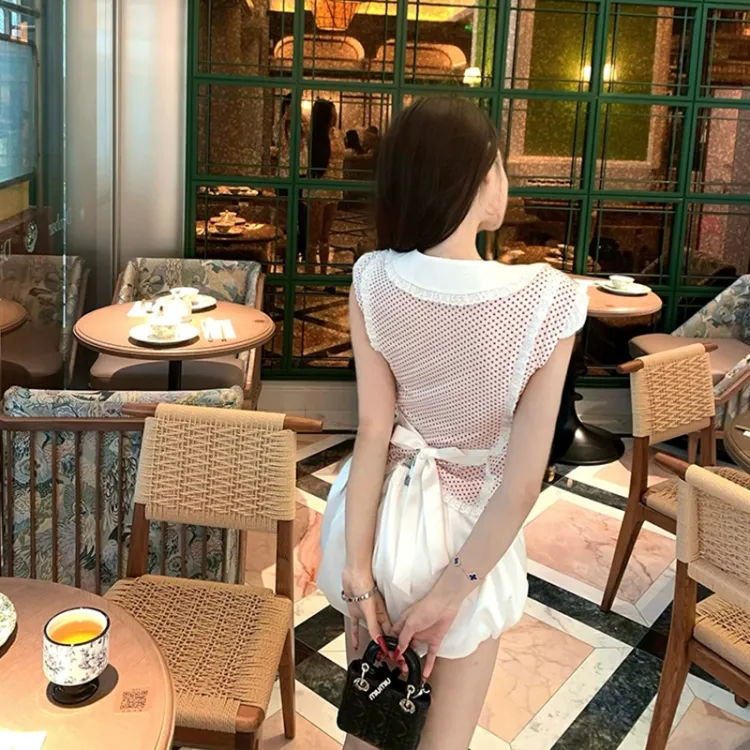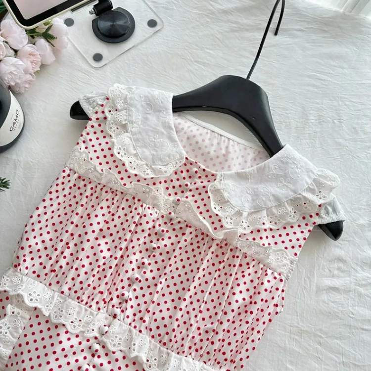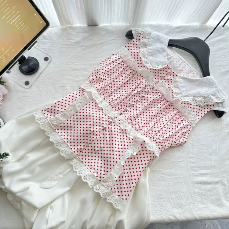 Красный топ с точкой + белые штаны, комплект одежды