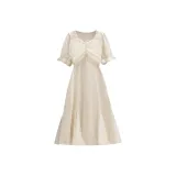 MEANALOT Абрикос Женские Короткие Платья с Длинными Рукавами