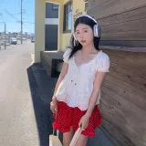 Комплект:Абрикосовый топ + Юбка с красным гороховым узором, комплект одежды