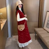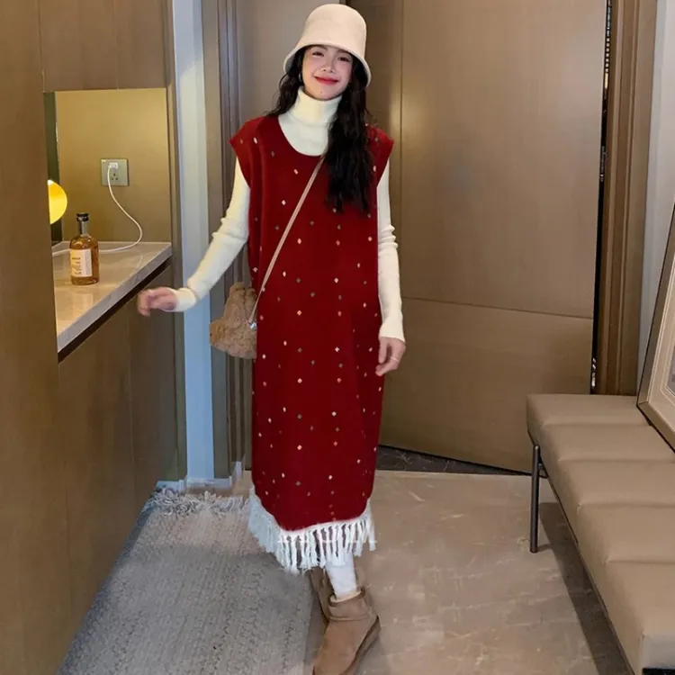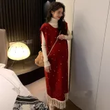 Комплект:Красный сарафан + белый слой подкладочной ткани