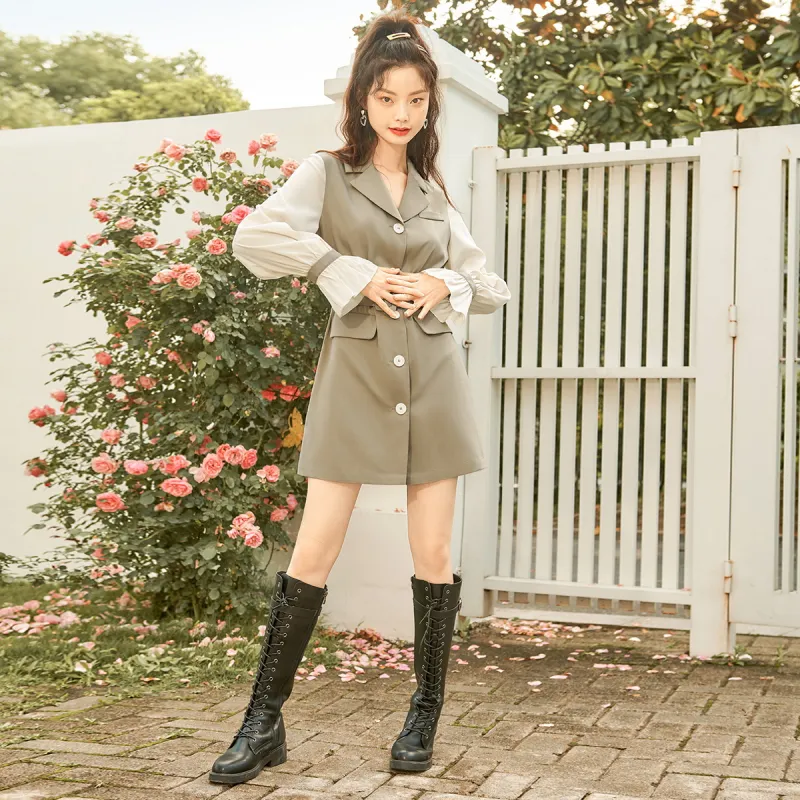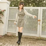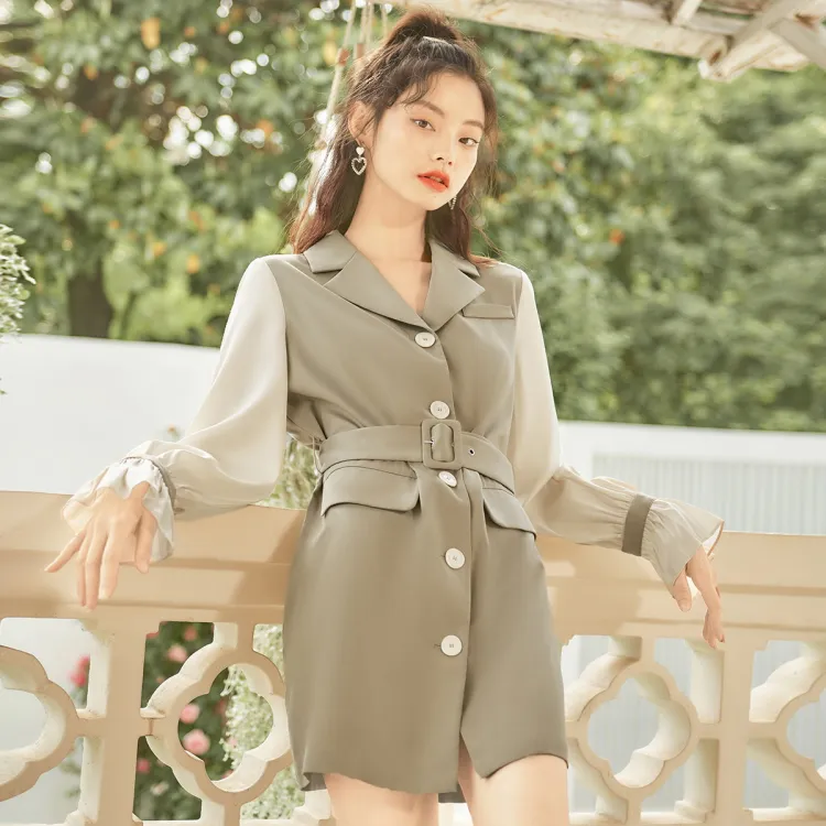 MEETLADY Серый хаки Женские Длинные Платья с рукавами