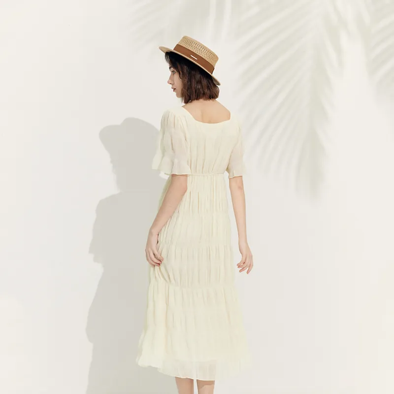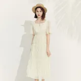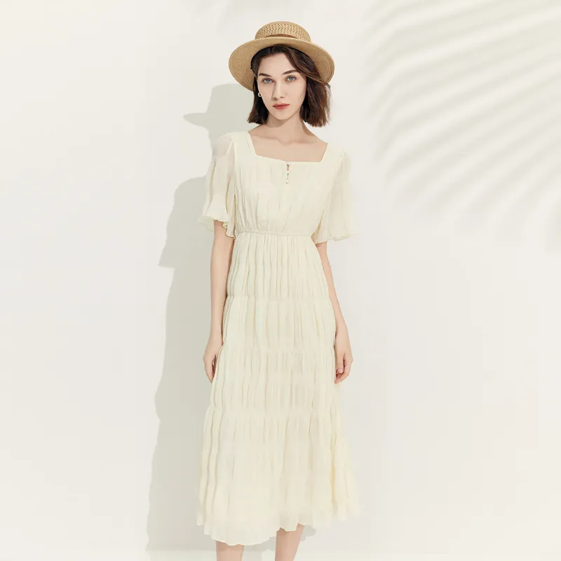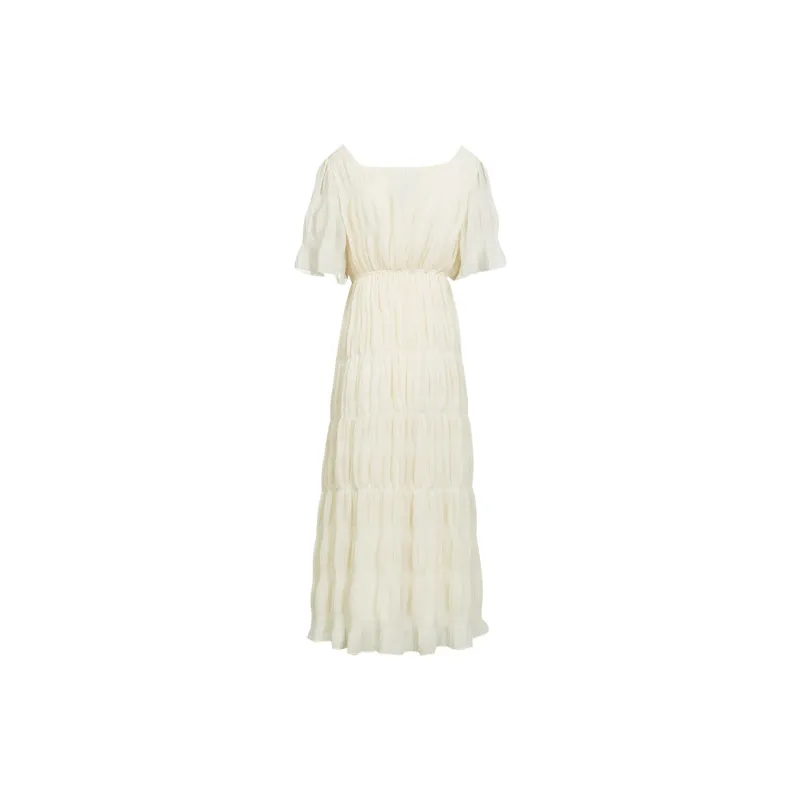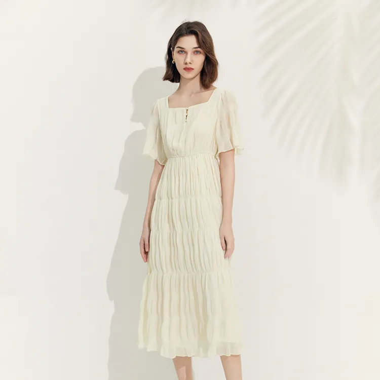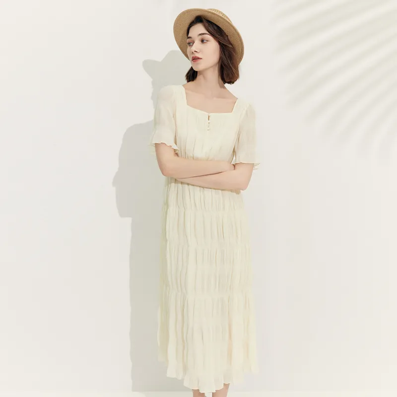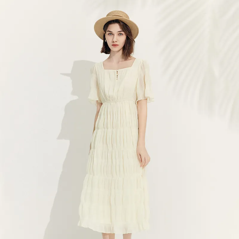 MeetMetro Короткий рукав Платье Женское Экрю