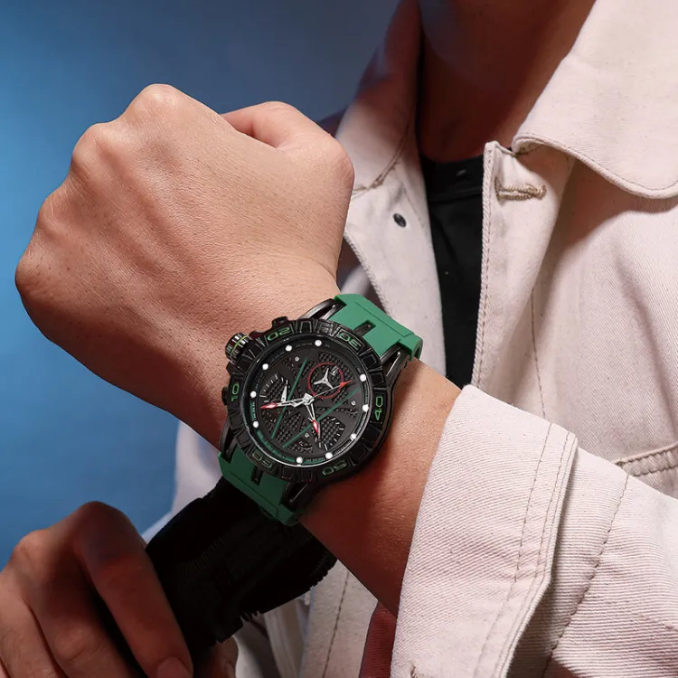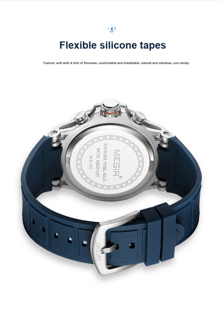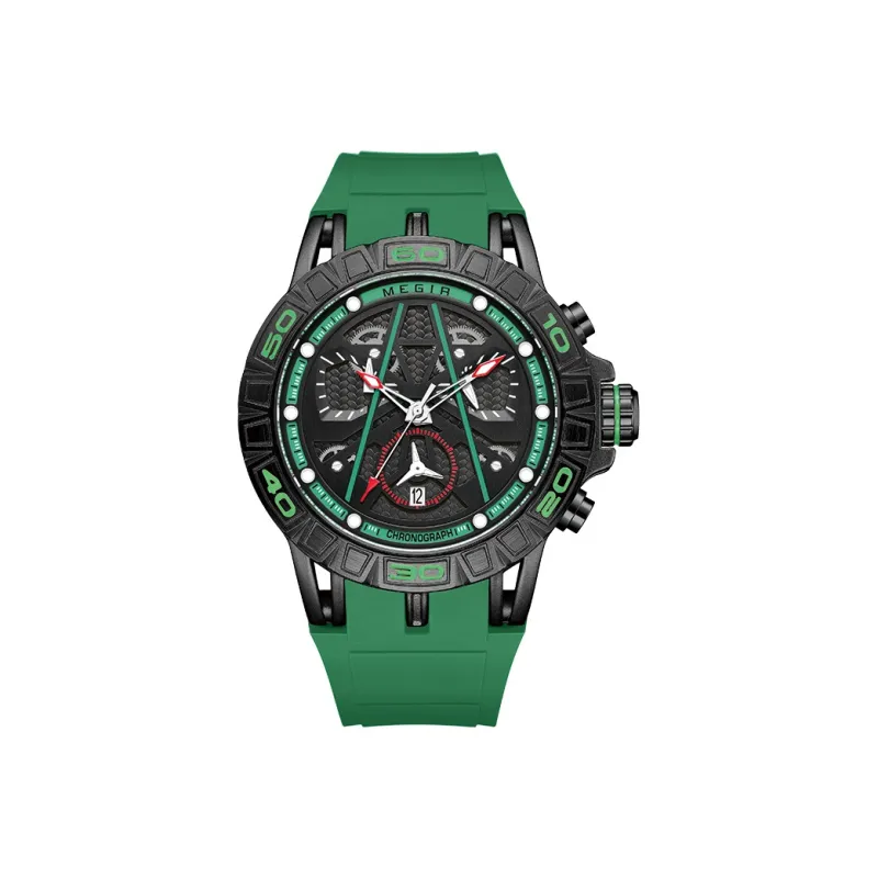 MEGIR Кварцевый механизм силиконовый ремешок унисекс зеленый циферблат модель 8110G