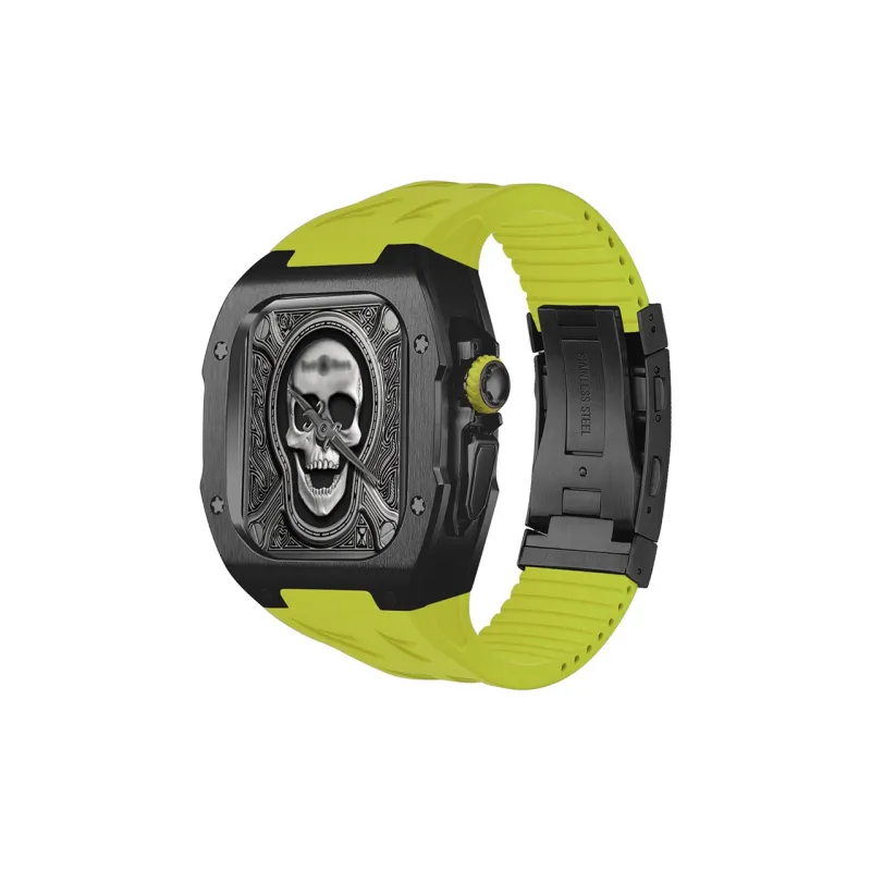 Ремешок Цвет:Классический черный корпус с черной средней рамкой - неоновый зеленый фторкаучуковый ремешок - пряжка для погружения