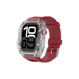 Ледниковый белый + красный фторкаучук, часы, полоска, серебряная пряжка