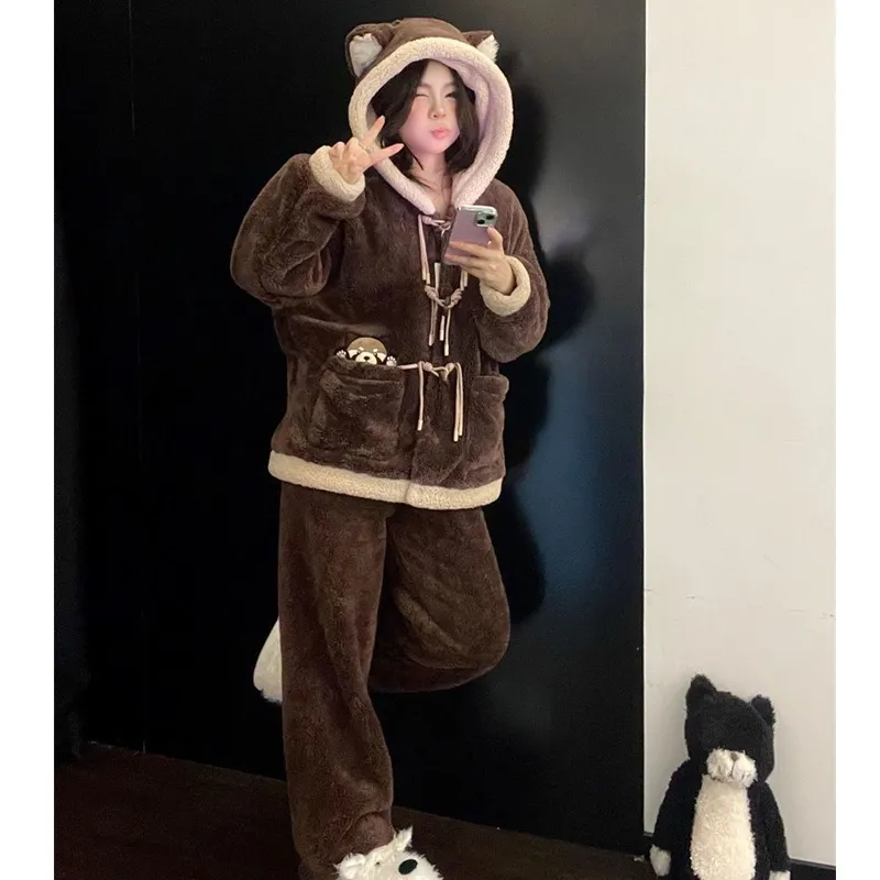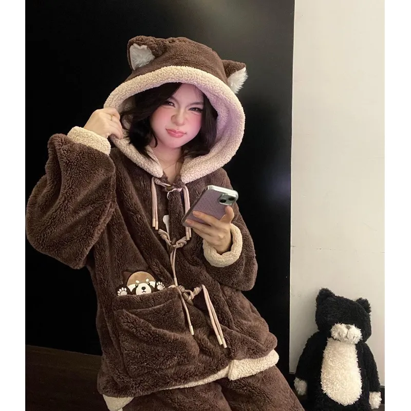 MEIJIAO Brown Bear Комплекты одежды Женские Пижамные комплекты