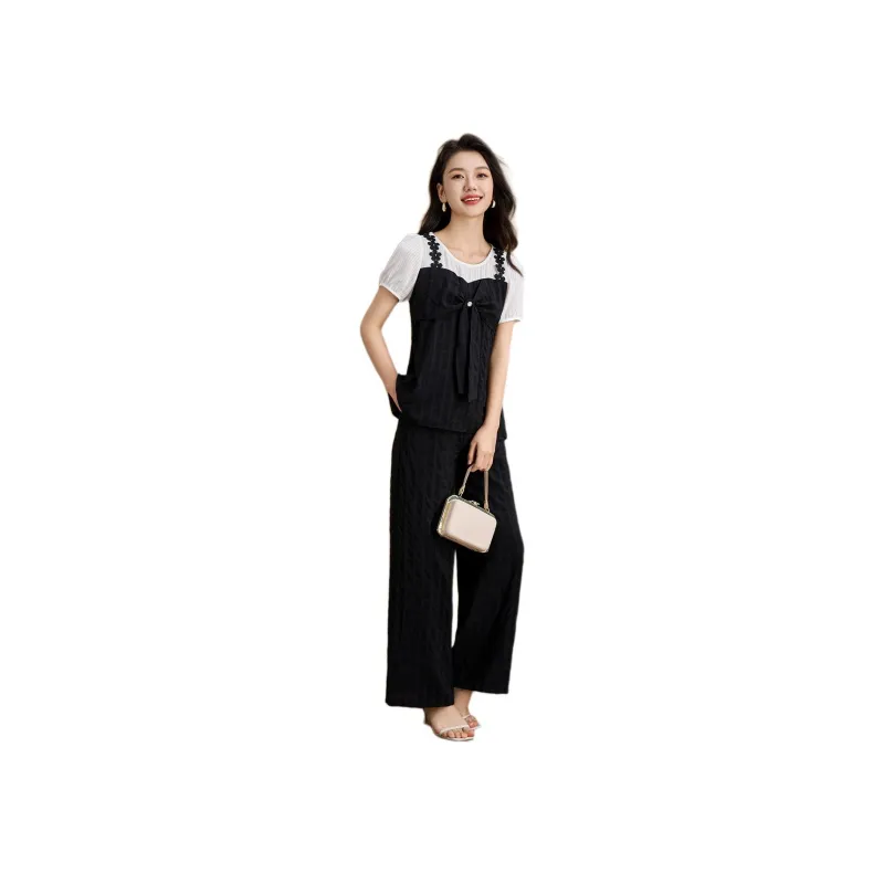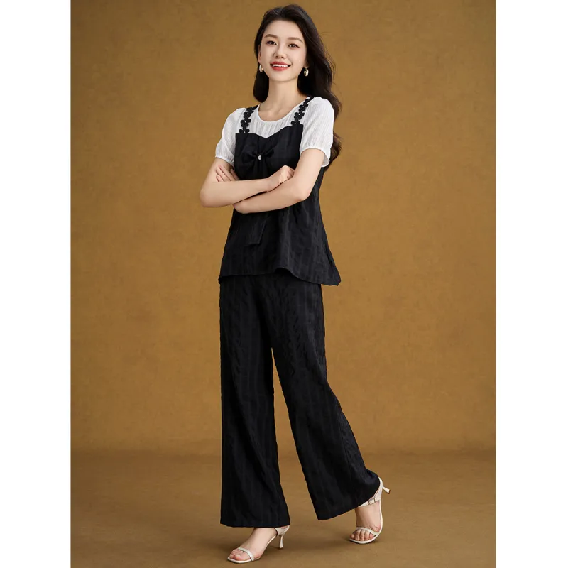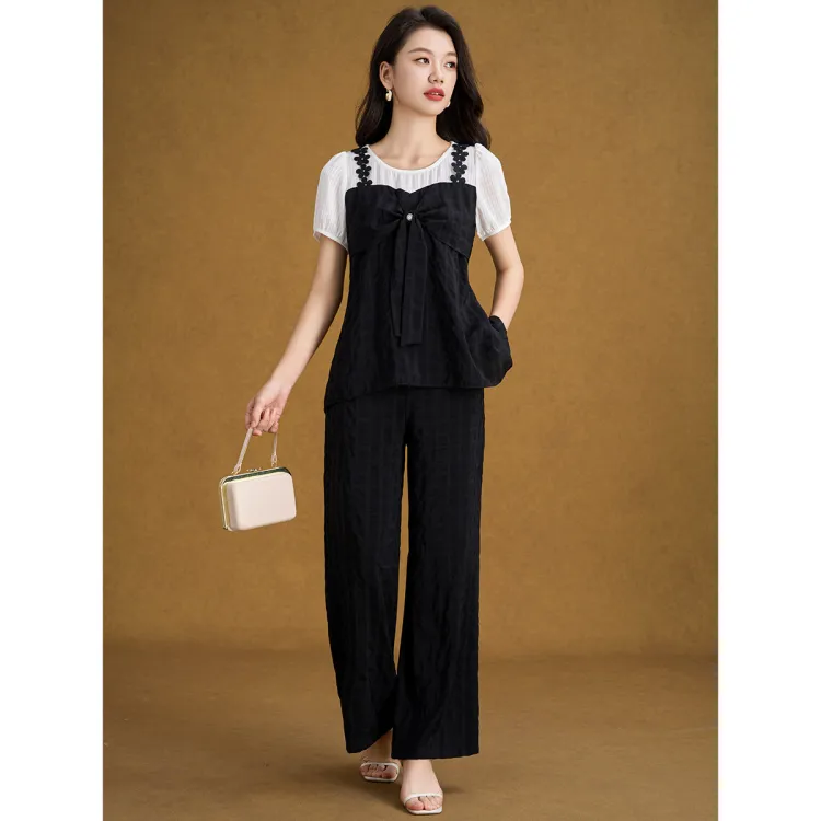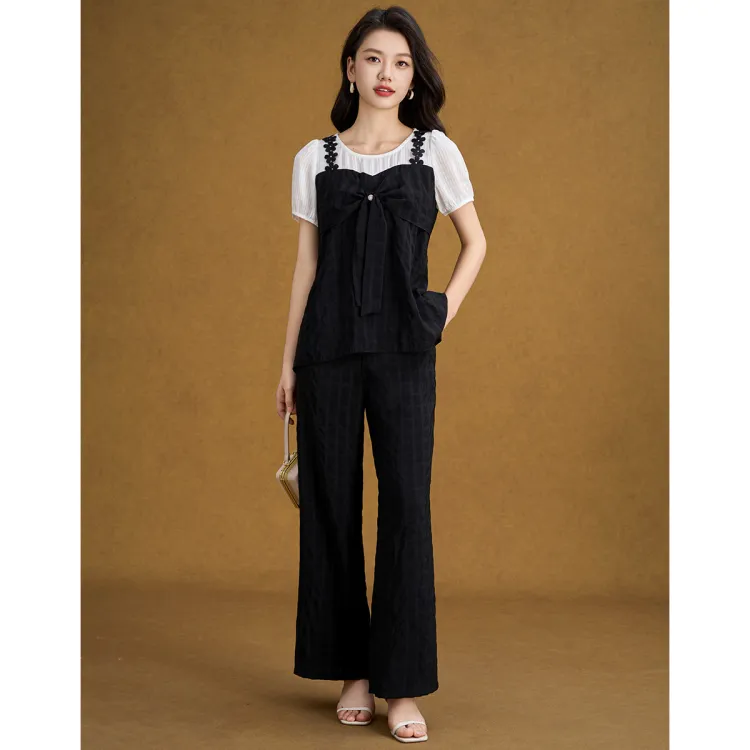 Имитация двухслойности, клетка, короткие рукава + широкие штаны