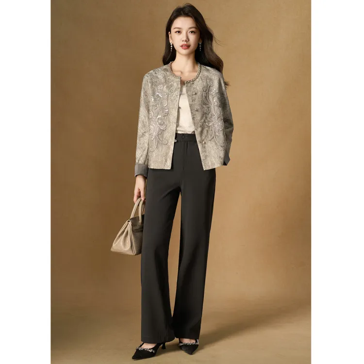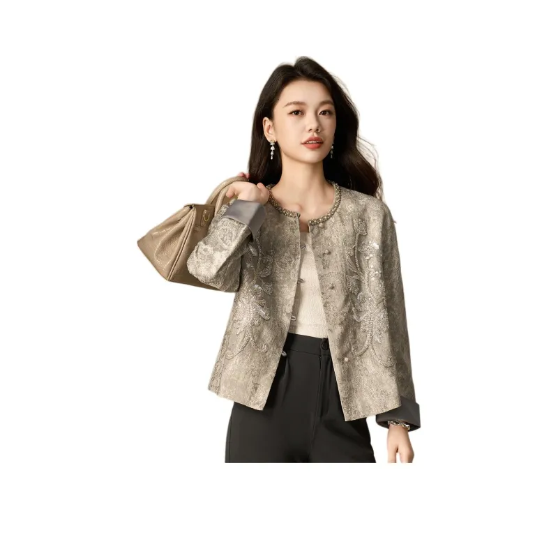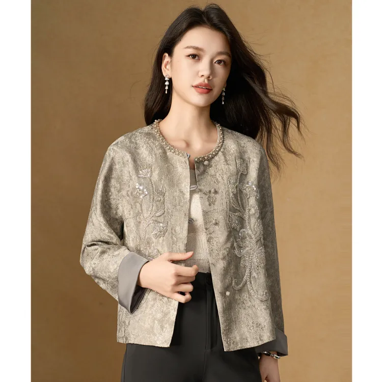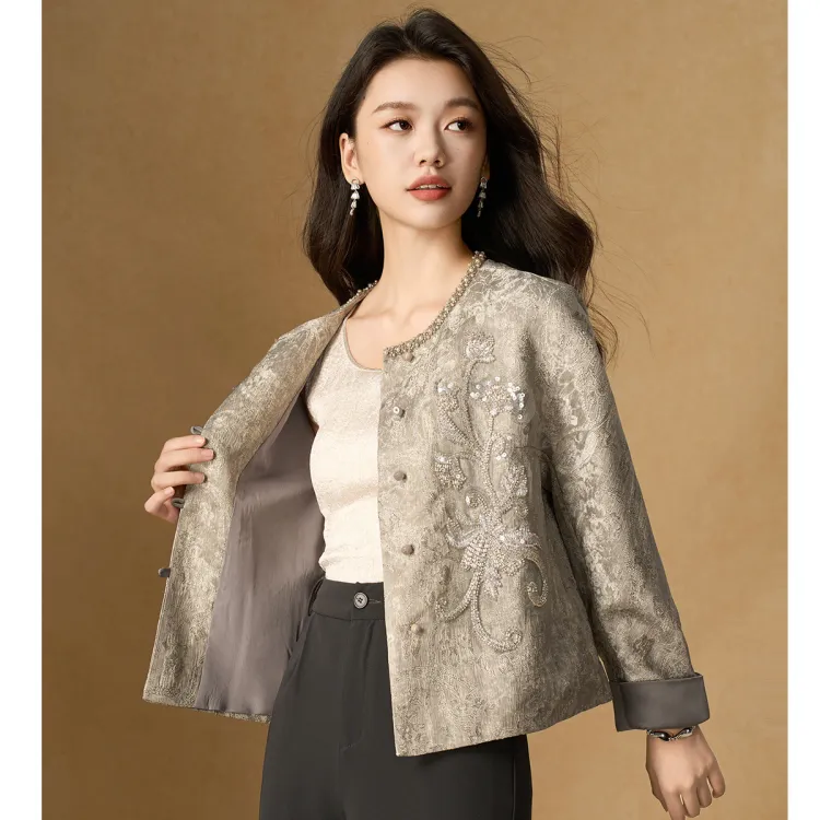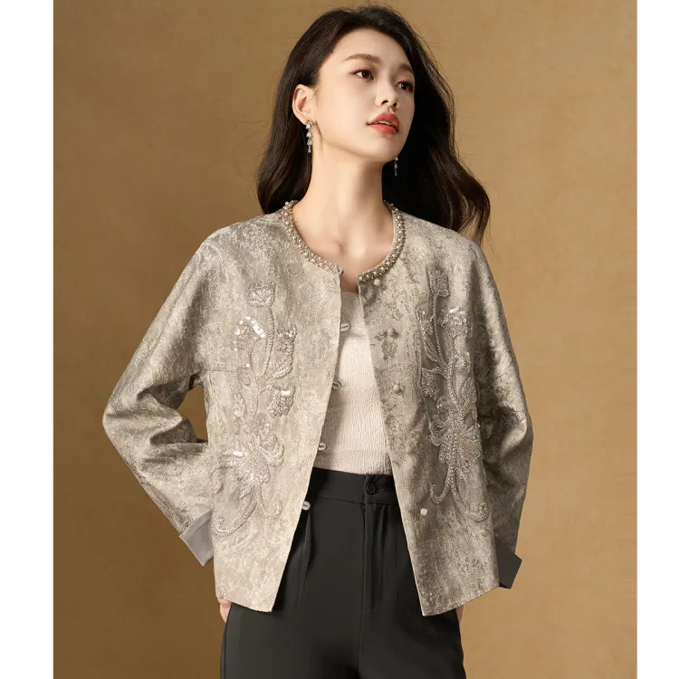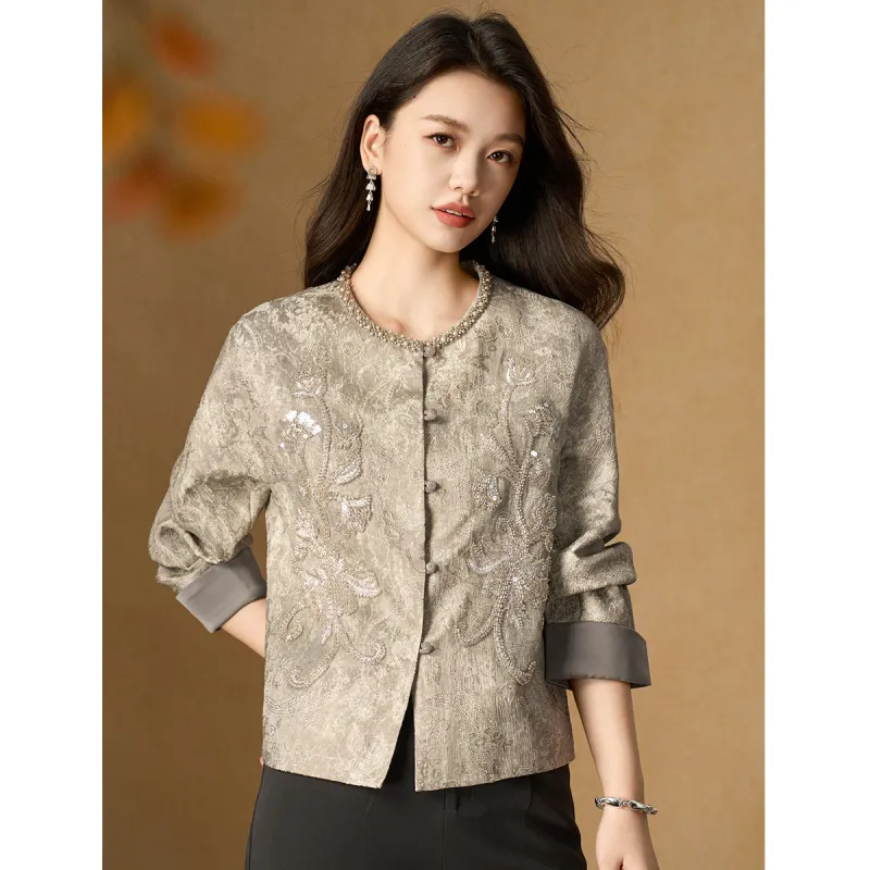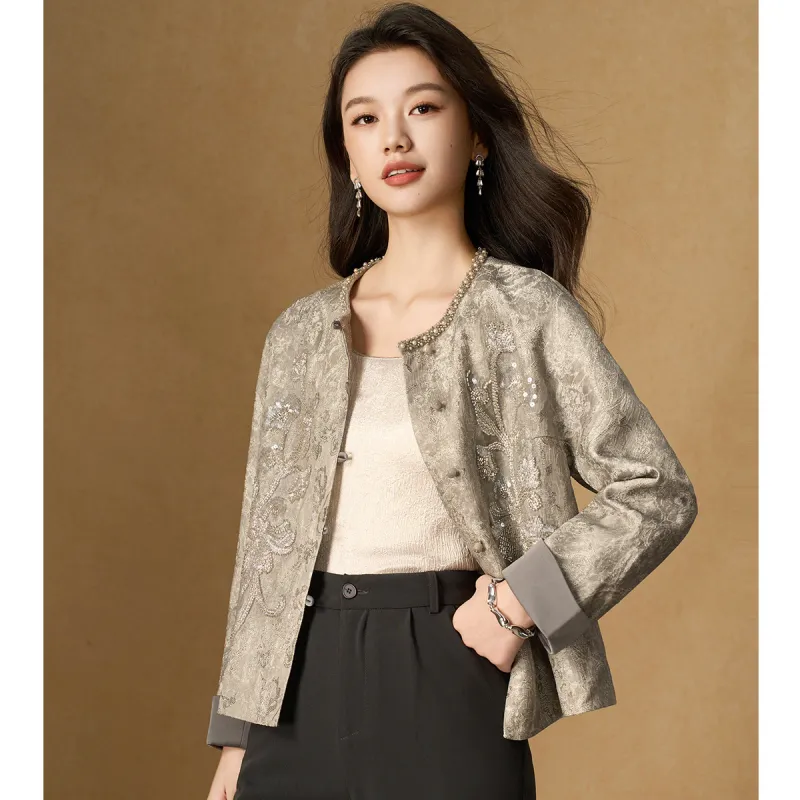 MEILANNI Серый [Плотный бусины дизайн] Женское короткое пальто