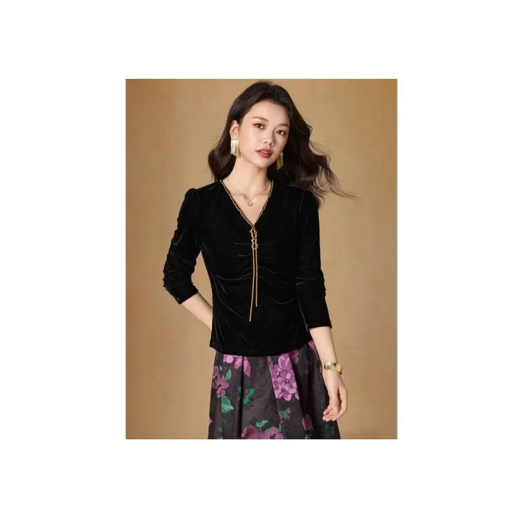 В-образный вырез, длинный рукав, топ + юбка