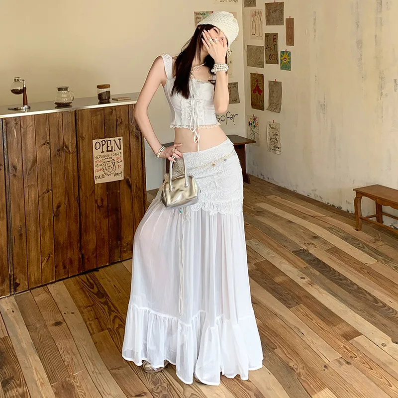 MEISIDUO Белый Юбка Женские Повседневные Длинные Юбки