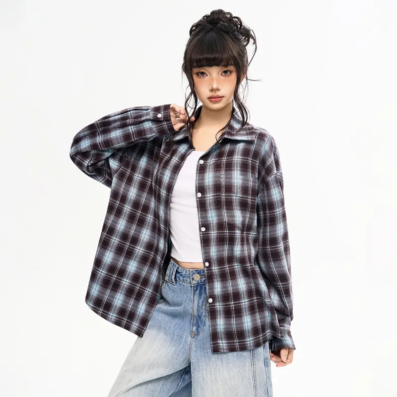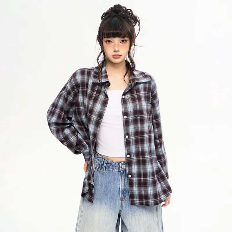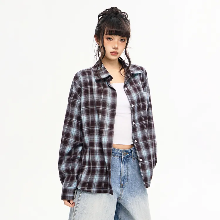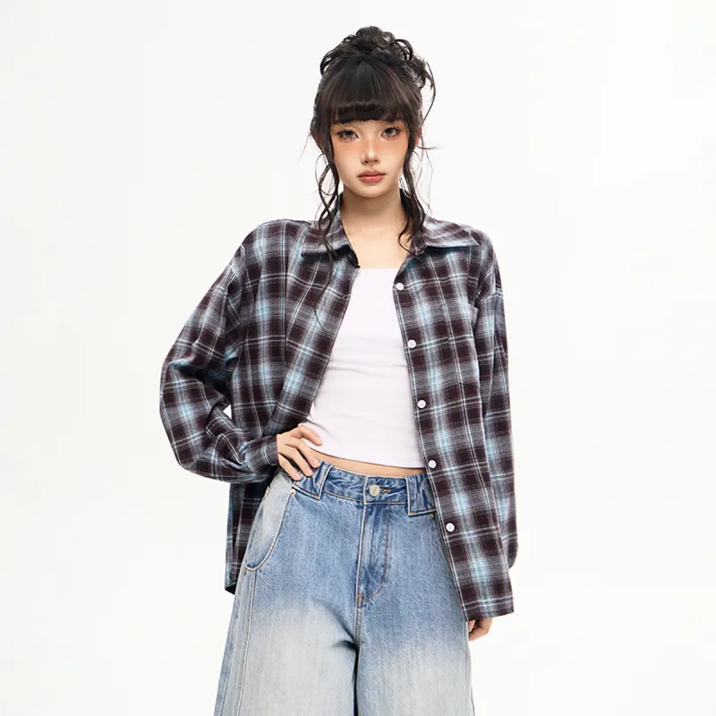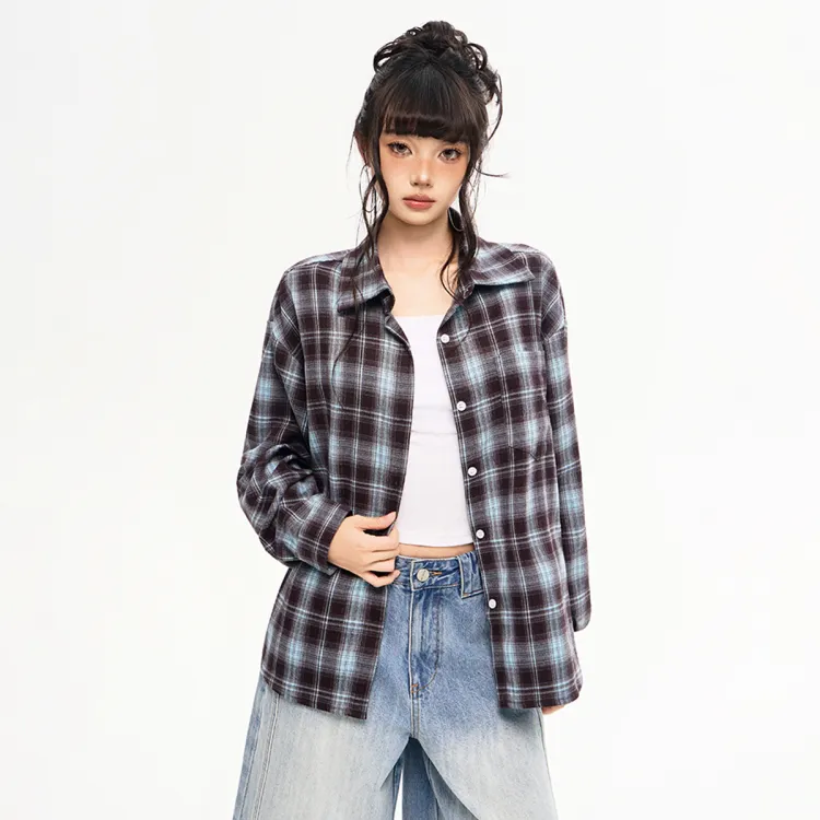 MEISIDUO Кофейная клетка Пальто Женские Рубашки
