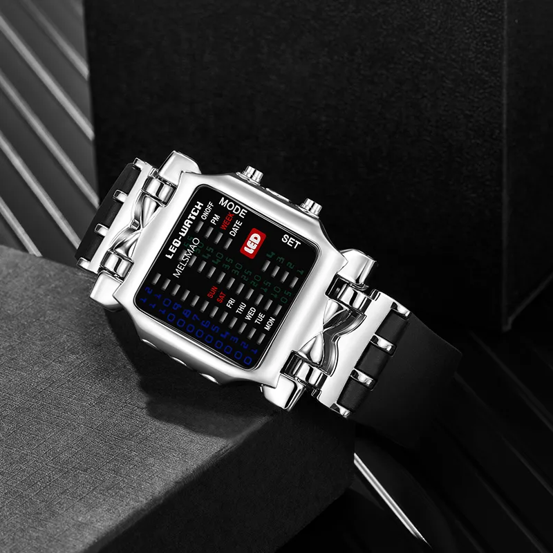 MELSMAO Новый CONCEPT Binary Краб Часы Кварцевый механизм ПУ (полиуретан) Ремешок Часы Мужские Черный Циферблат