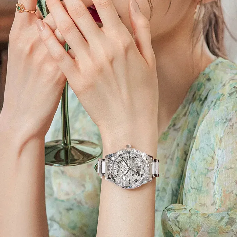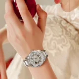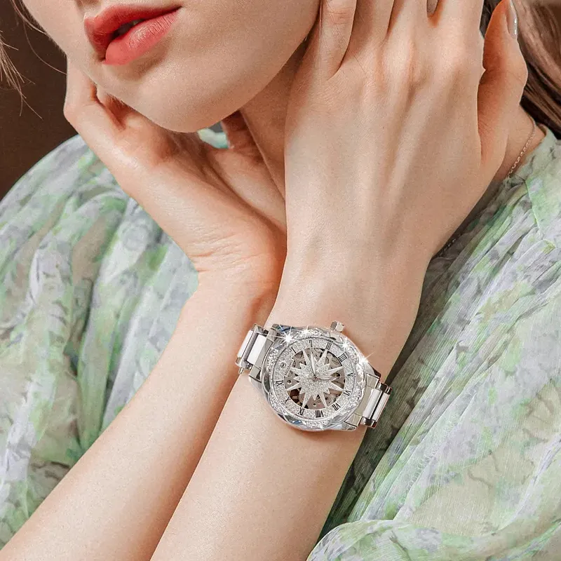 MELSMAO Snowflake Queen Механический механизм Керамика Ремешок Часы Женские часы Серебристый циферблат