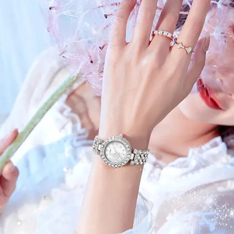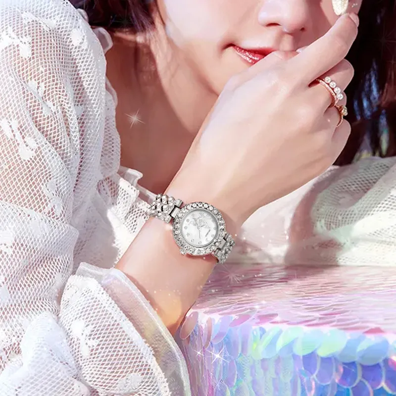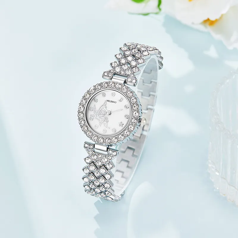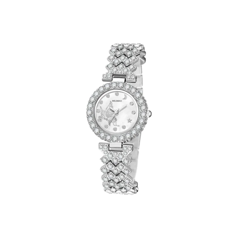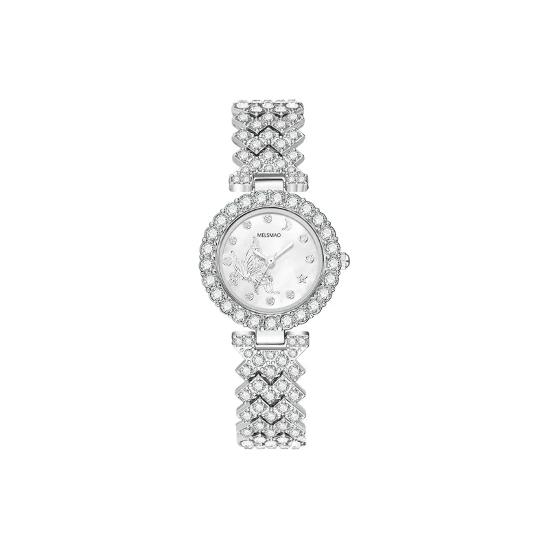 MELSMAO Звезда и луна Бабочка Full Лазурь Звезда Кварцевый механизм Сплав Ремень Часы Женские часы Белый циферблат