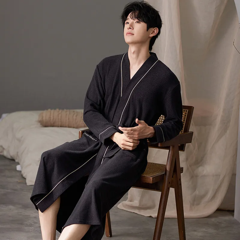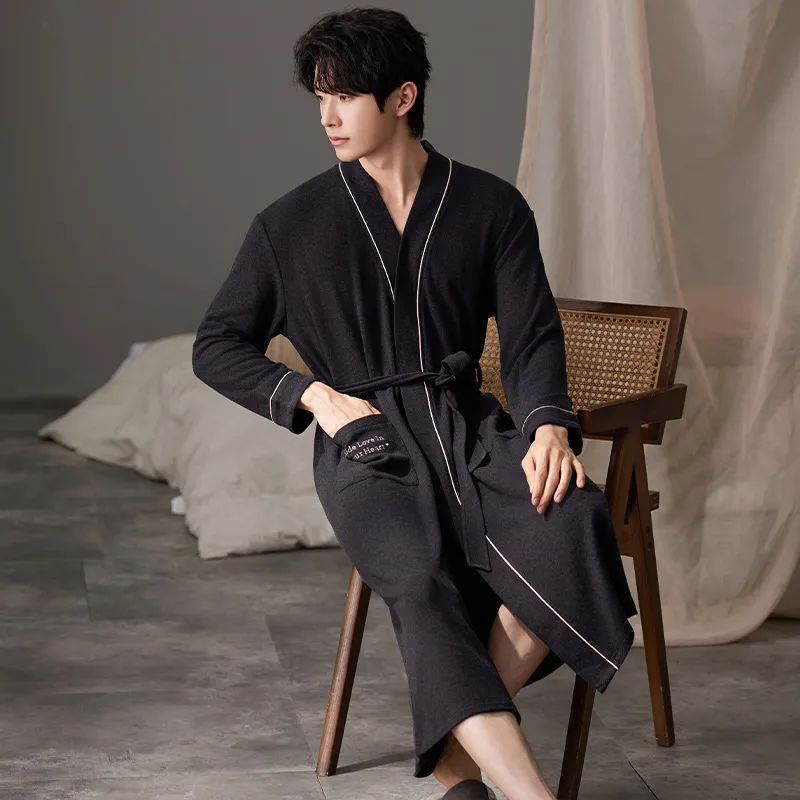 MENGLUAN Черный мужской банный халат