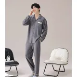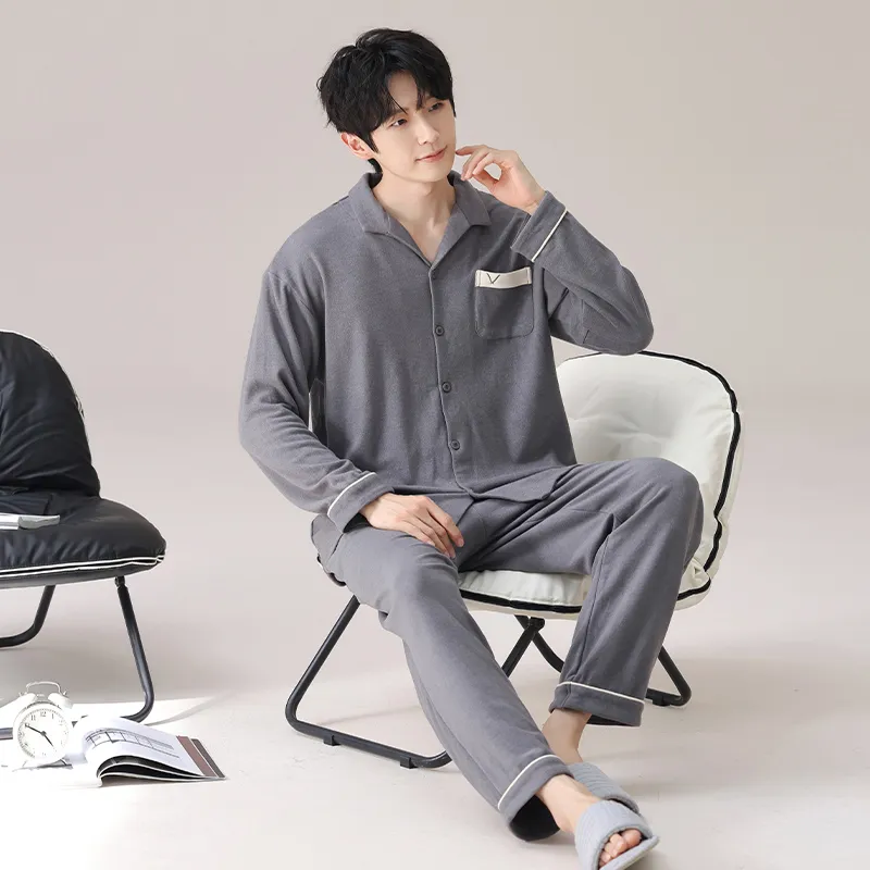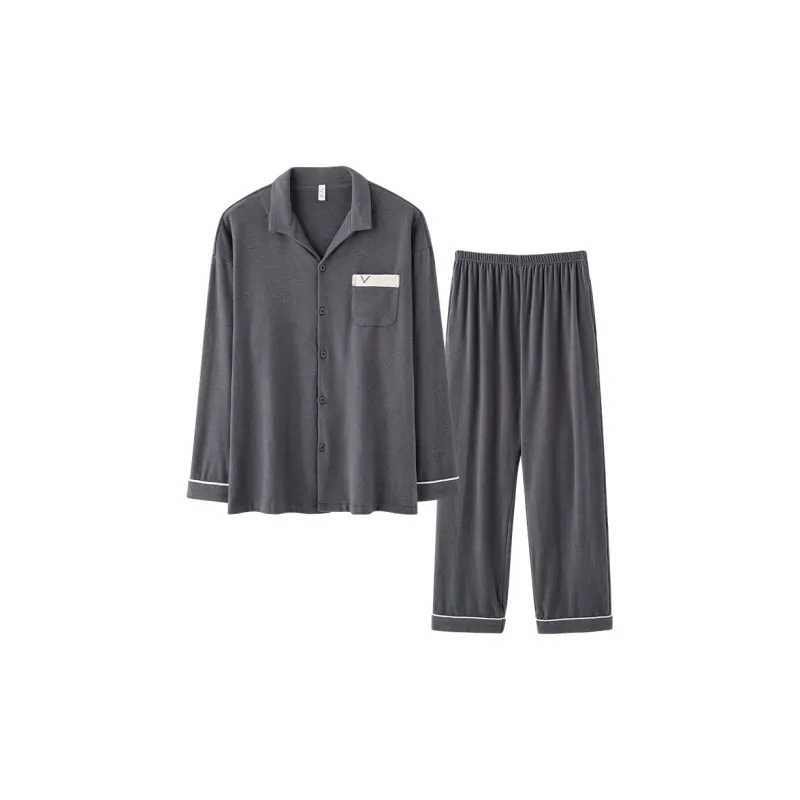 MENGLUAN Сланцево-серый мужской пижамный комплект