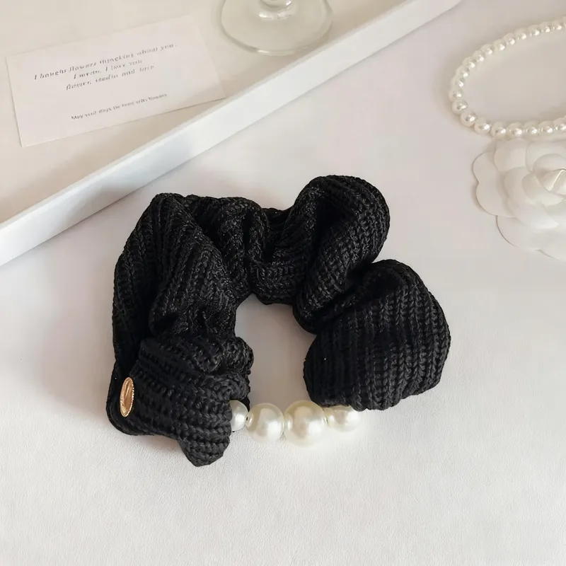 Стиль:Черная трикотажная ткань, пряжа, жемчужная резинка для волос